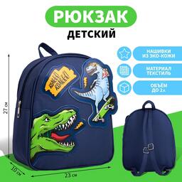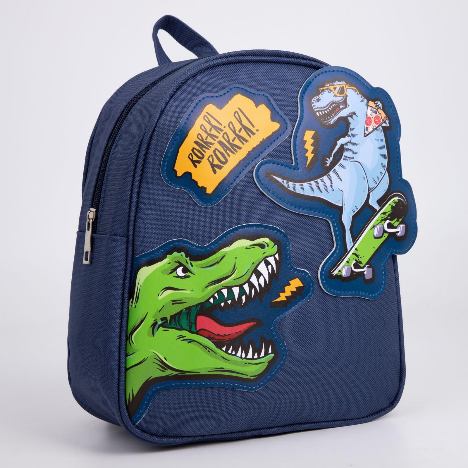 Рюкзак текстильный «Динозавры», с нашивками, 27×23×10 см