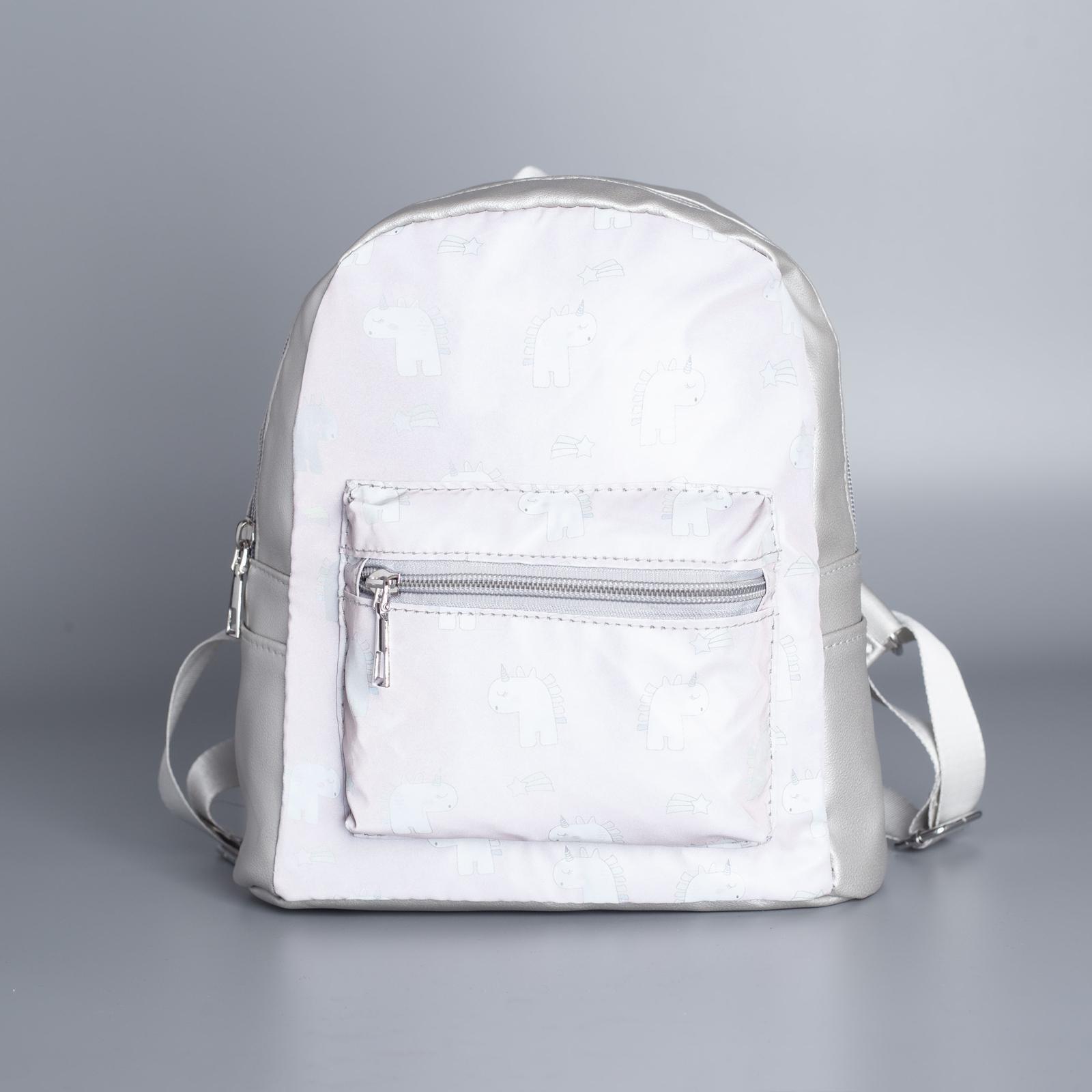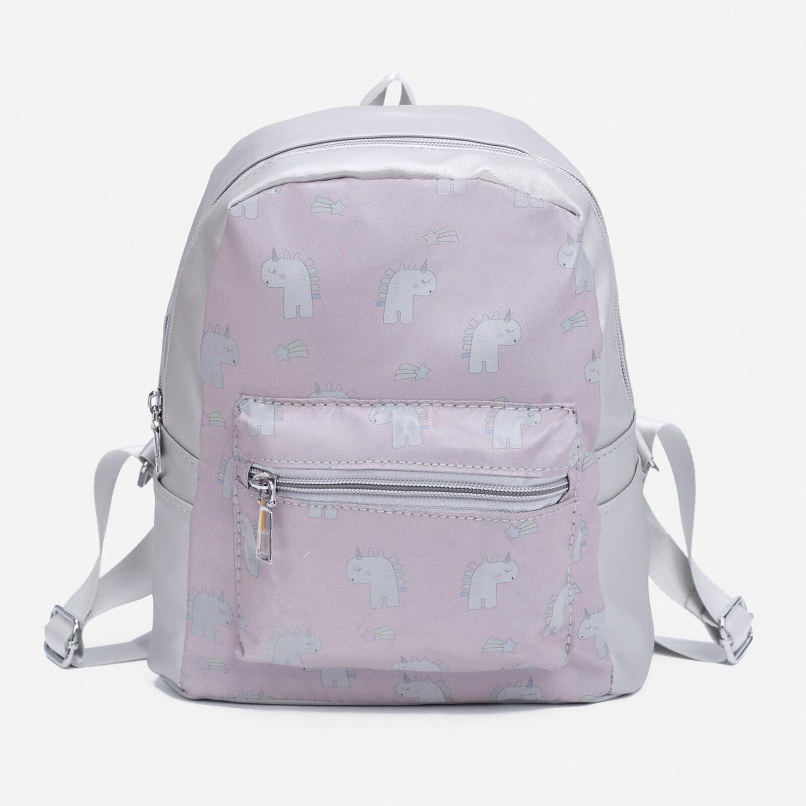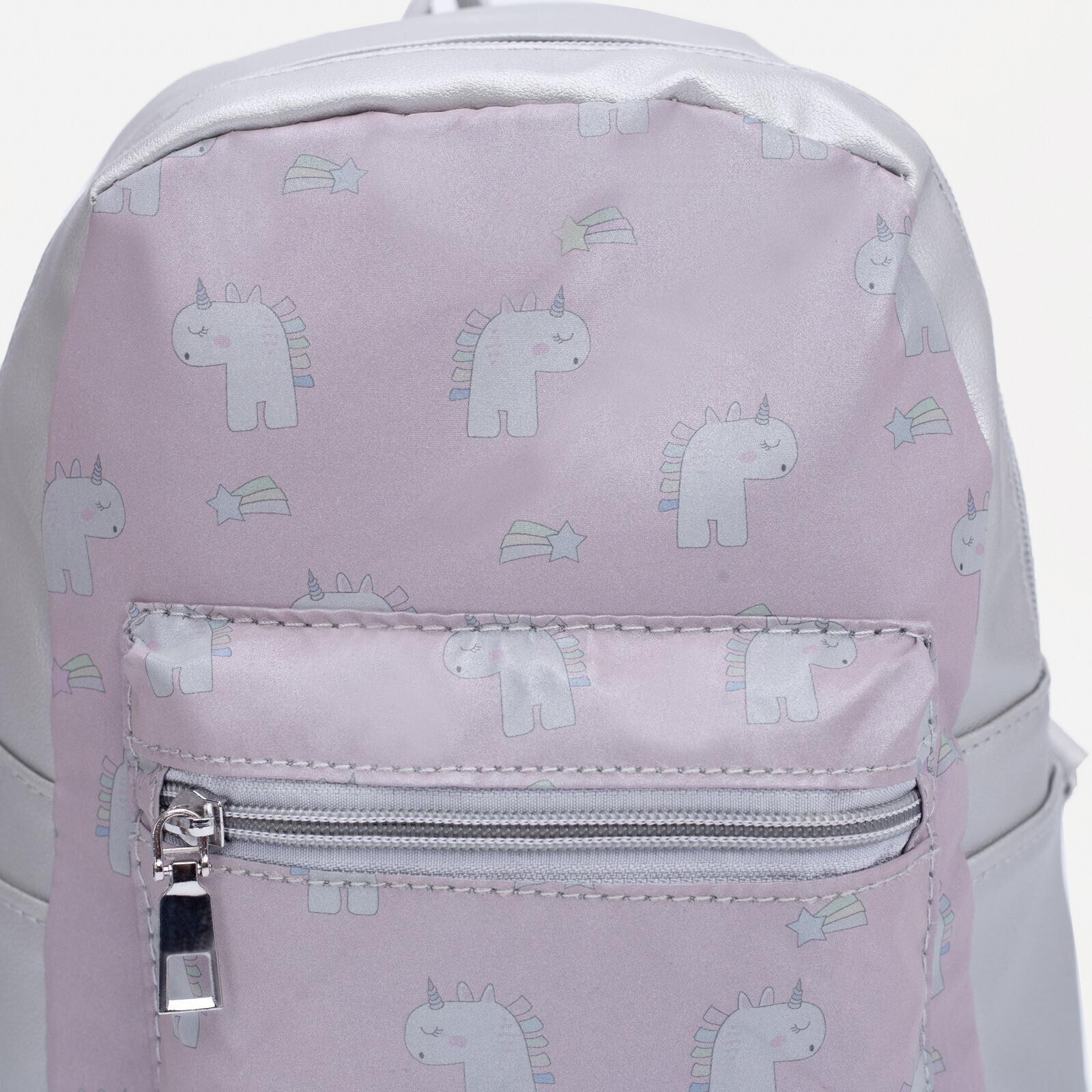 Рюкзак, отдел на молнии, наружный карман, светоотражающий, цвет серый, «Единороги»