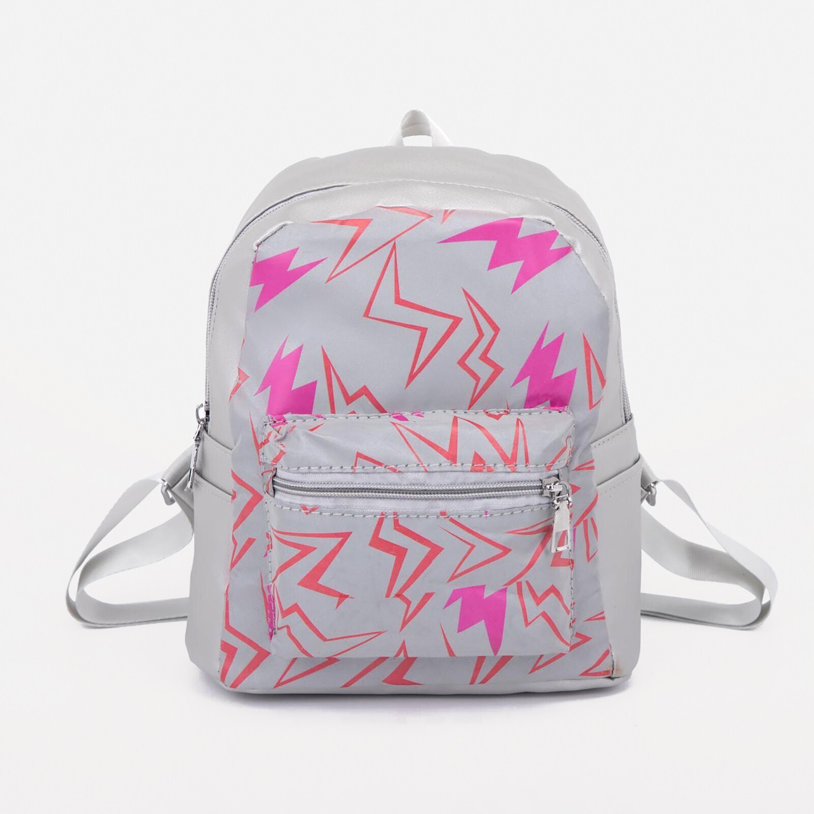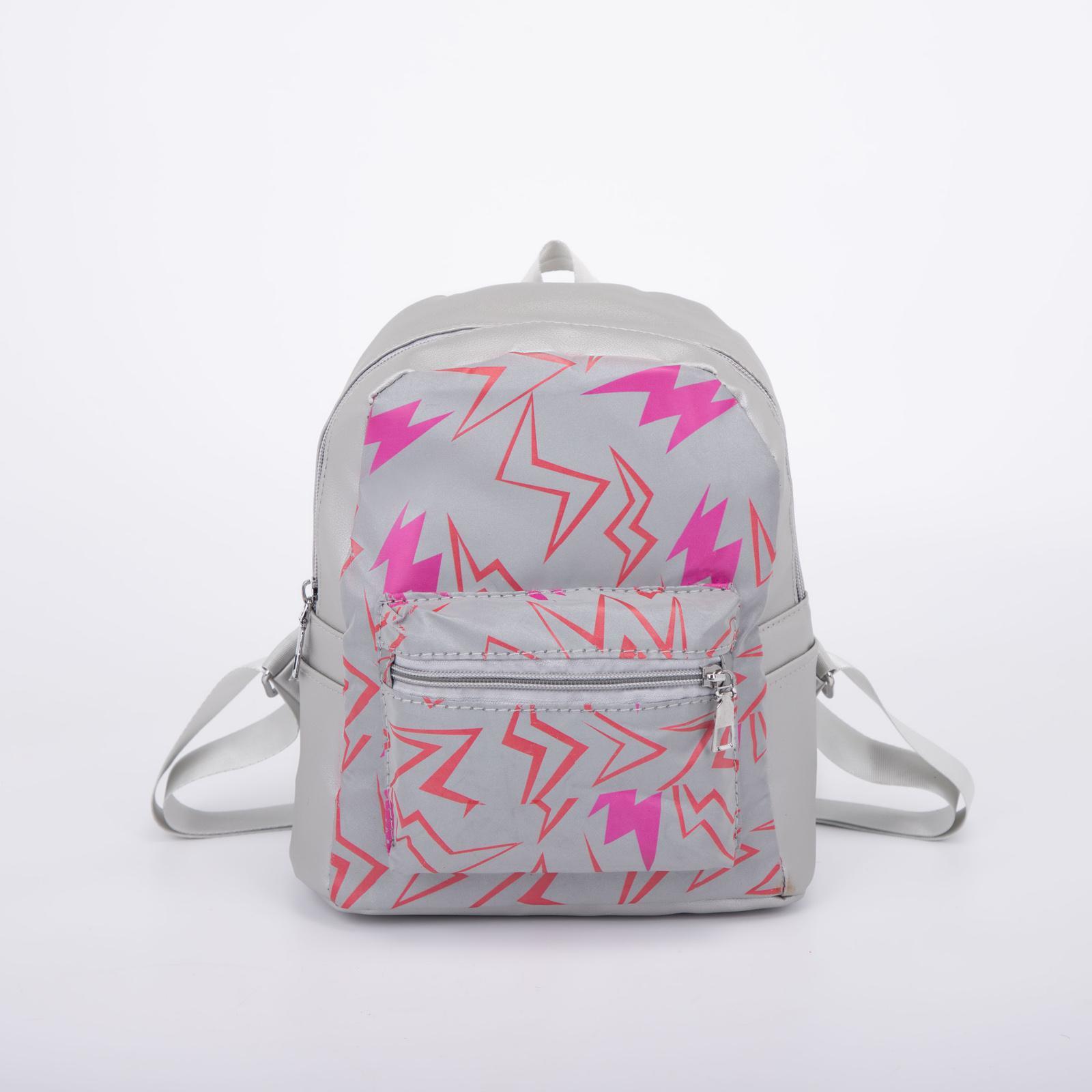 Рюкзак, отдел на молнии, наружный карман, светоотражающий, цвет серый/розовый