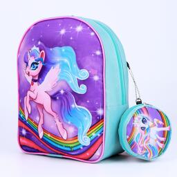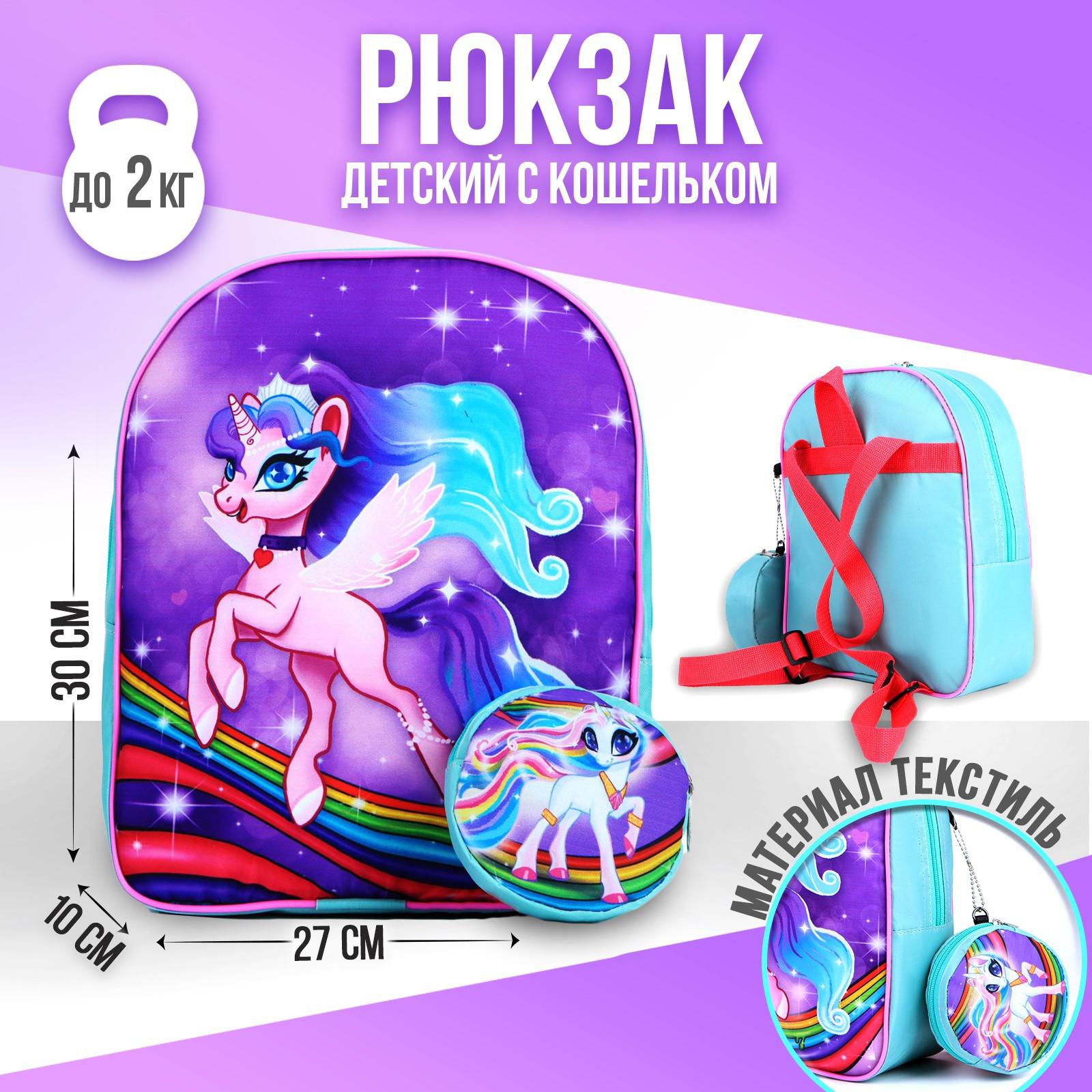 Рюкзак детский «Единорожка», 27х5х30, отд на молнии, мятный, с кошельком