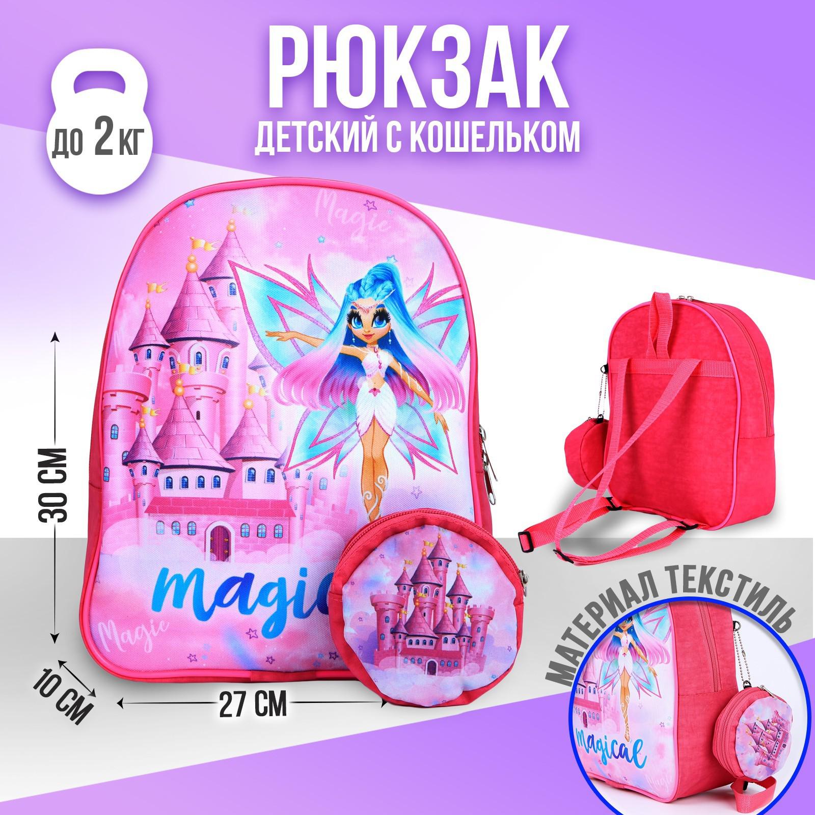 Рюкзак детский «Сказочная фея», 27х5х30, отд на молнии, розовый, с кошельком