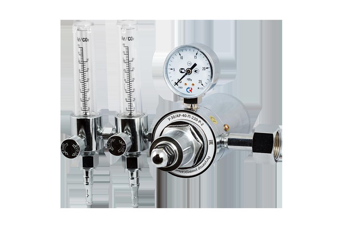 Регулятор предназначен для понижения и регулирования давления газа, поступающего из баллона, и автоматического поддержания постоянного рабочего расхода газа на выходе регулятора в ходе проведения работ. Комбинированный регулятор имеет манометр высокого давления и поплавковый расходомер с вентилем регулировки расхода газа. Регулятор может использоваться как для аргона, так и для углекислого газа, для этого показывающие устройства снабжены двумя шкалами для разных газов. Регулятор оснащен подогревателем на 220В для эффективной бесперебойной работы.