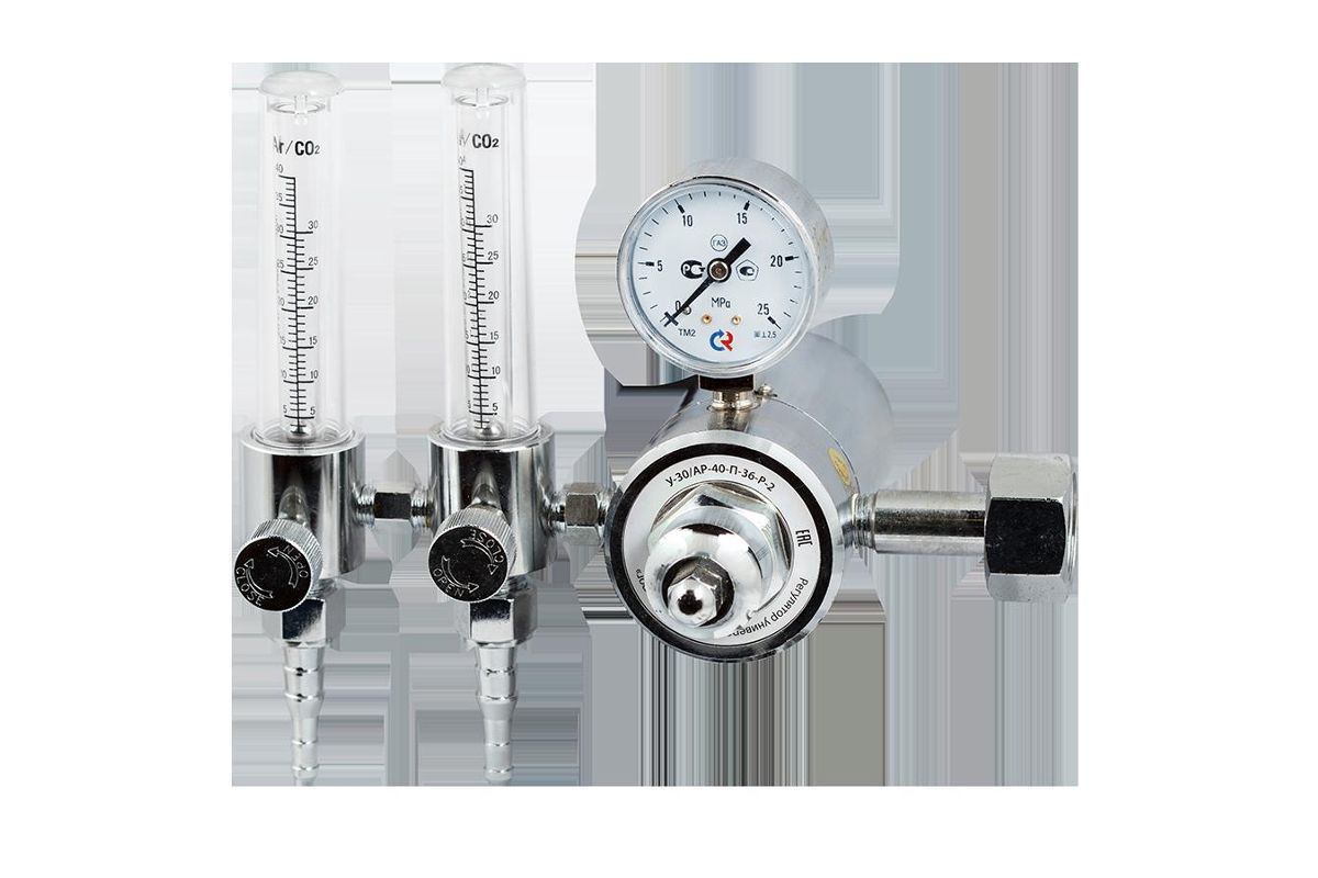 Регулятор предназначен для понижения и регулирования давления газа, поступающего из баллона, и автоматического поддержания постоянного рабочего расхода газа на выходе регулятора в ходе проведения работ. Комбинированный регулятор имеет манометр высокого давления и два поплавковых расходомера ( ротаметр-колба) с вентилем регулировки расхода газа.Регулятор может использоваться как для аргона, так и для углекислого газа, для этого показывающие устройства снабжены двумя шкалами для разных газов. Регулятор оснащен подогревателем на 36В для эффективной бесперебойной работы.