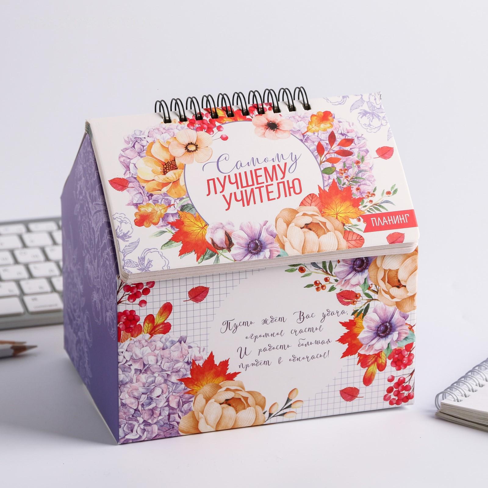 Шкатулка - домик «Самому лучшему учителю», + планер 50 листов, 16х15х12 см