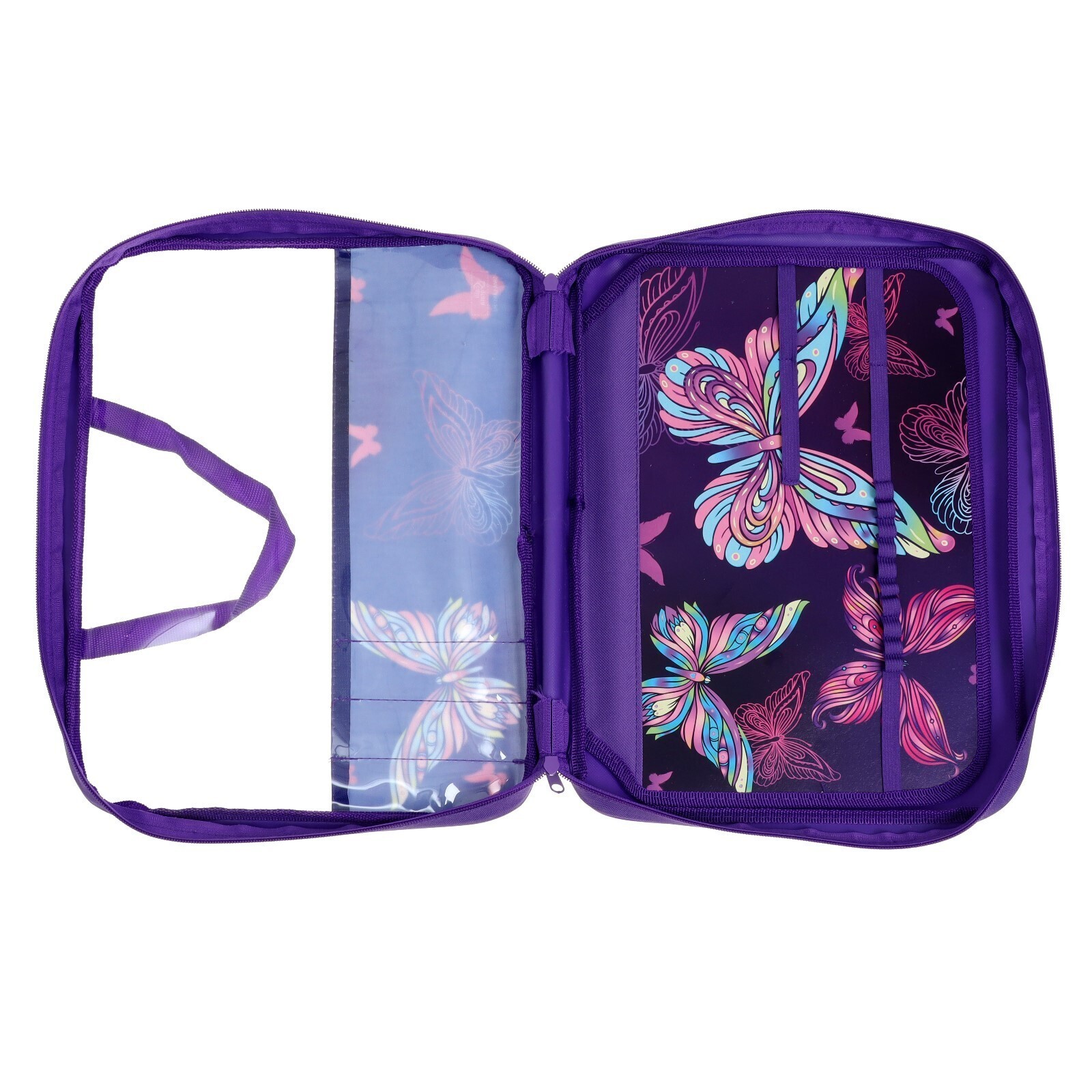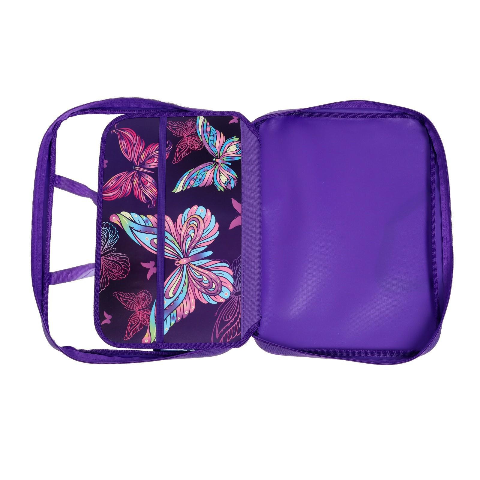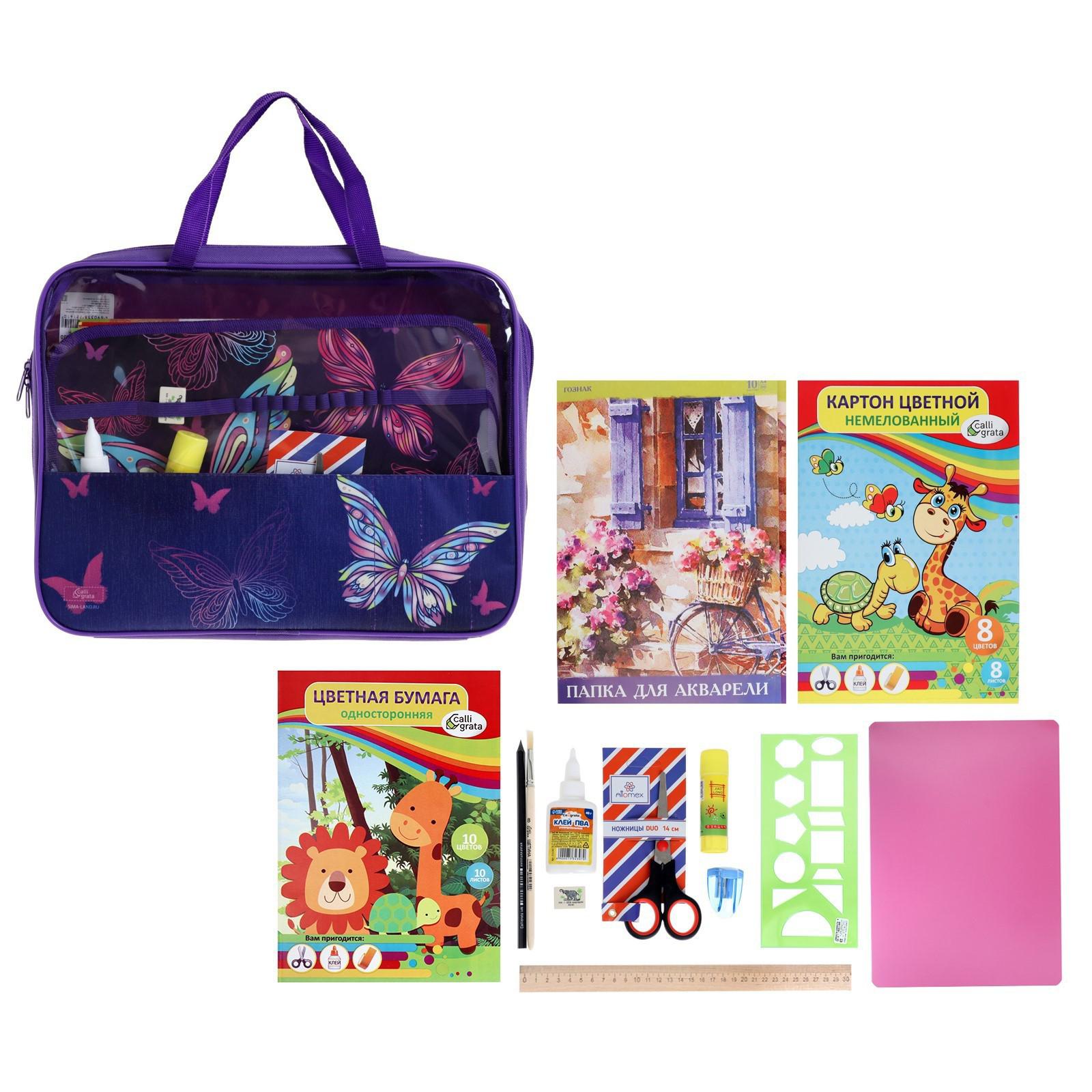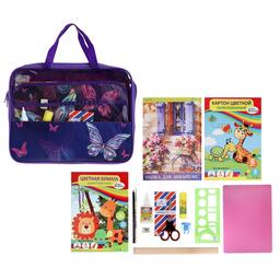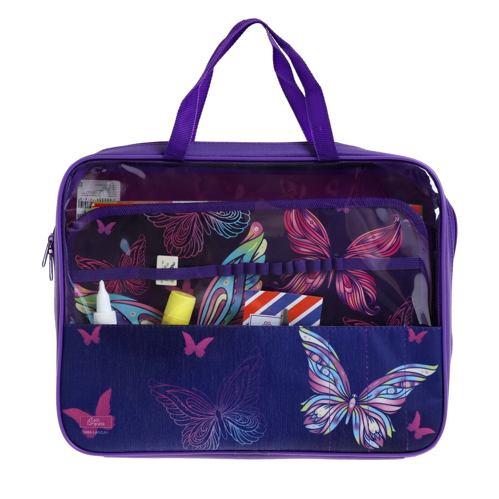 Папка для труда А4, 335 х 260 х 60 мм, с ручками текстиль, ПВХ, с наполнением 13 предметов, Calligrata, ПТР-111, "Бабочки"
