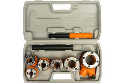 Состоит из трубных клуппов, плашкодержателя с трещоткой и сборной рукоятки. Применяется для быстрого нарезания дюймовой конической резьбы на трубах в любом, даже труднодоступном месте. Все предметы изготовлены из прочных материалов и уложены в пластмассовый кейс, что способствует удобству хранения и транспортировки.