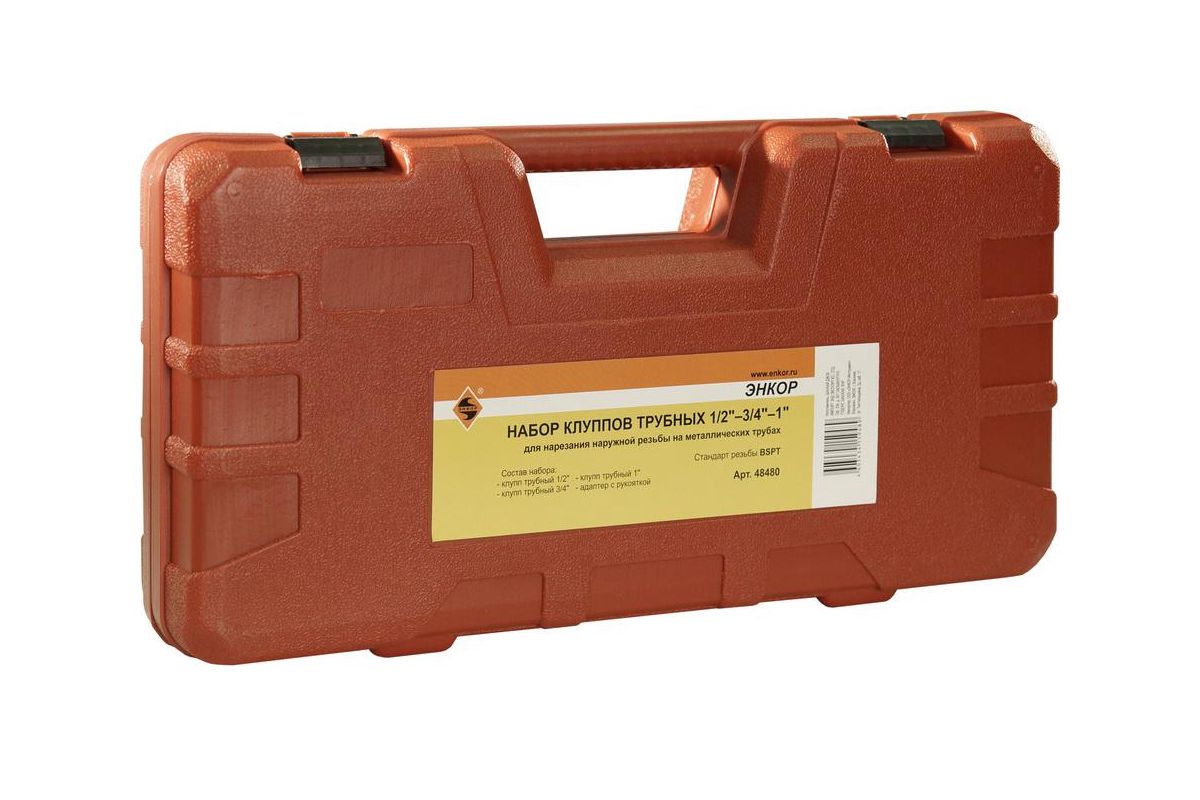 Набор клуппов трубных ЭНКОР 48480 1/2''-3/4''-1'' с адаптером