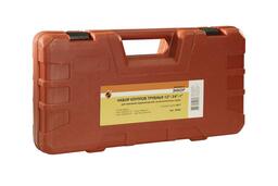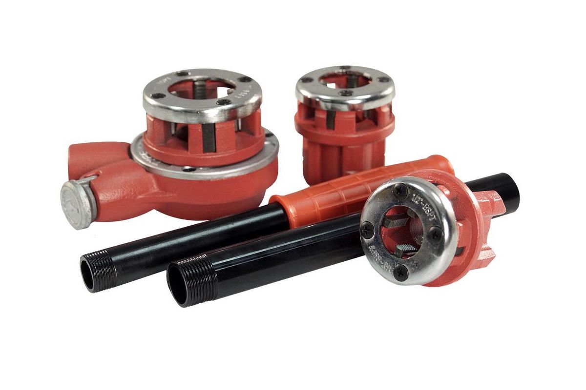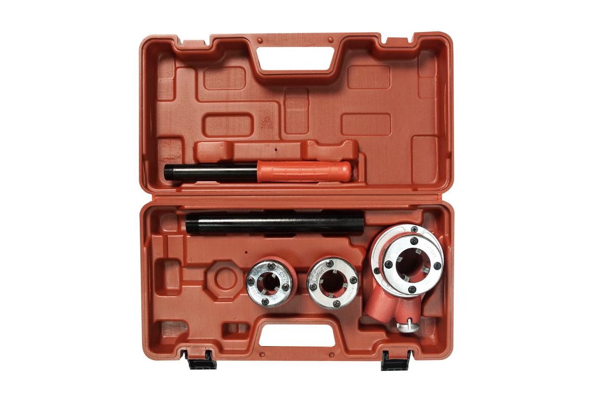 Комплект специализированных приспособлений для нарезания резьбы. Все комплектующие поставляются в прочном пластиковом кейсе, что обеспечивает удобство хранения и транспортировки.