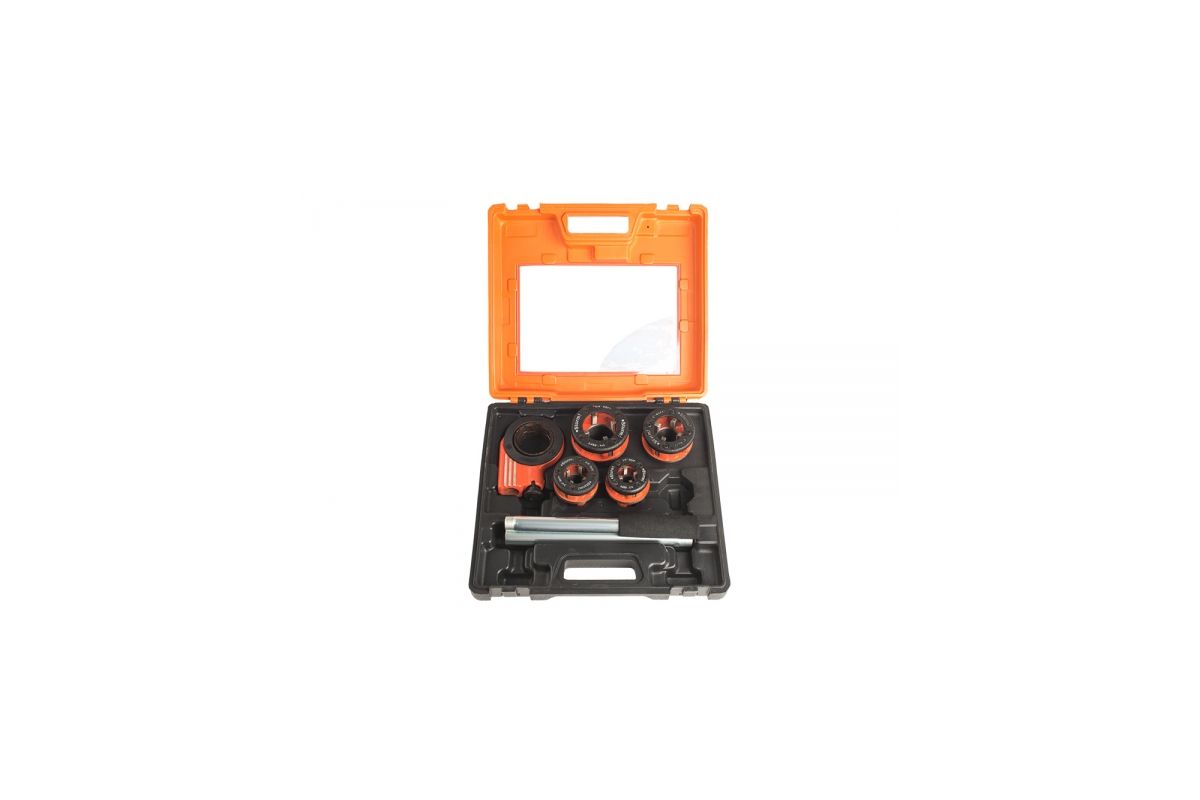 При помощи набора клупп STURM! 1065-02-S4 можно нарезать дюймовую резьбу на стальных трубах и прутках диаметром 12-32 мм. В набор входят 4 плашки под стандартные размеры ½'', ¾'', 1'' и 1¼''и держатель с трещоткой. Вес — 5,5 кг.