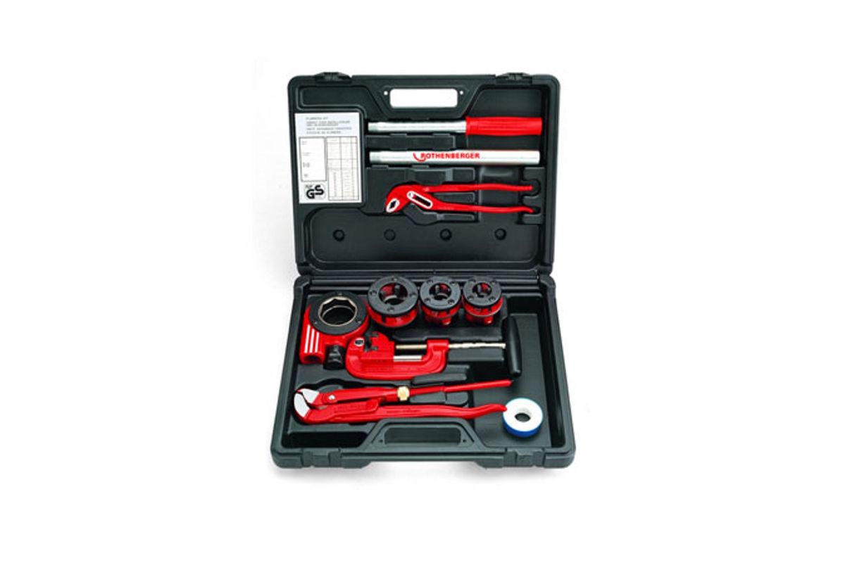 ROTHENBERGER SANI KIT 70600r — набор профессионального сантехинструмента в кейсе. Предназначен для монтажно-ремонтных работ на трубопроводах различного назначения (водопроводных, газовых и пр.). В этот практичный набор включено наиболее необходимое: труборез, клещи, газовый ключ, клупп с трещоткой и 3 резьбонарезные головки (диаметр — 1/2, 3/4 и 1").