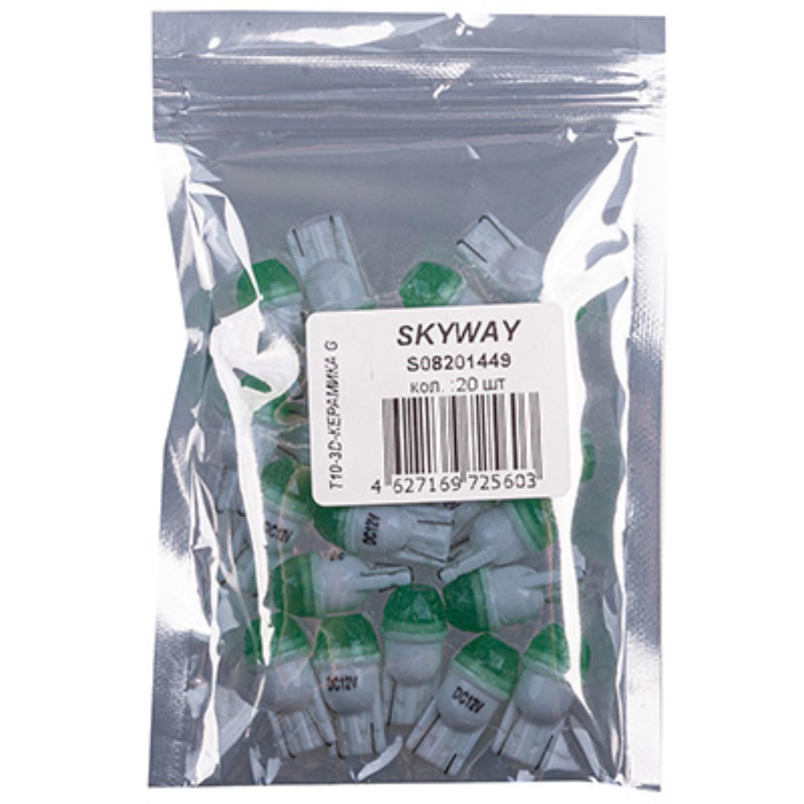 Лампа светодиодная T10 (W5W), 12V, 1 SMD диодов, 1-конт, керамика, 3D зеленая, SKYWAY, S08201449