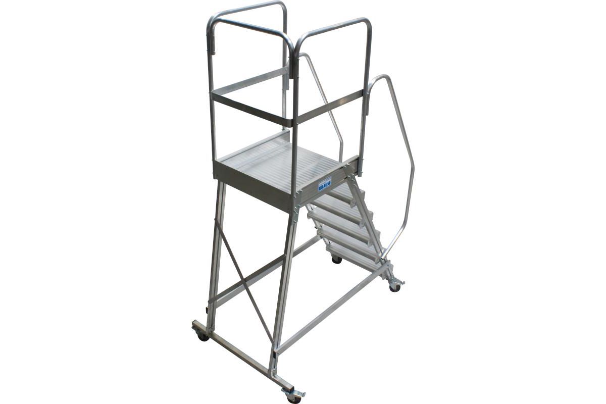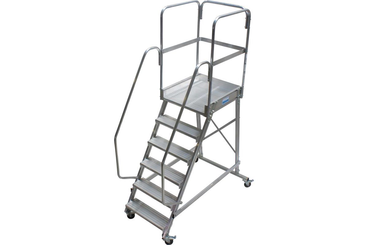 Односторонняя алюминиевая передвижная лестница с площадкой. Широкие