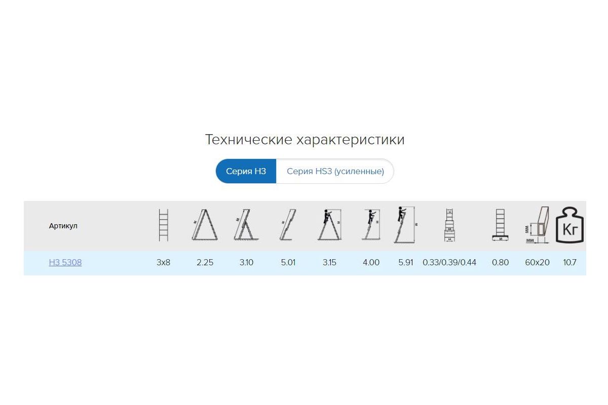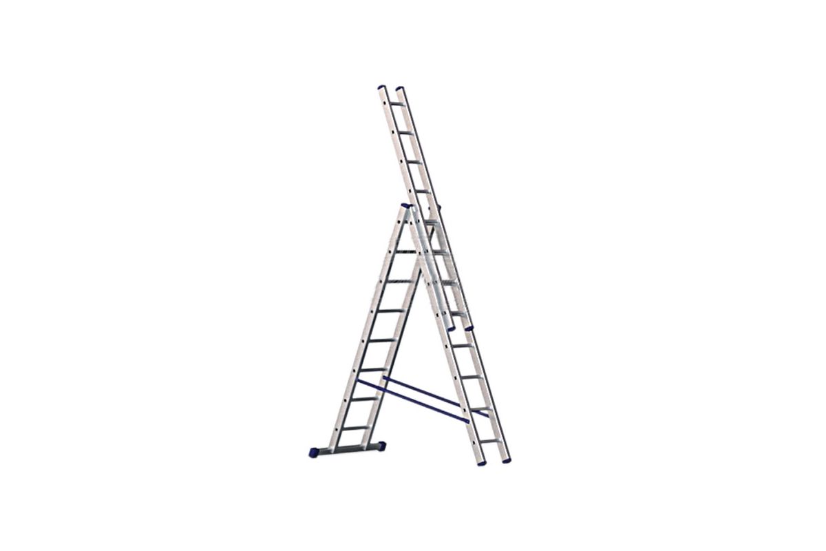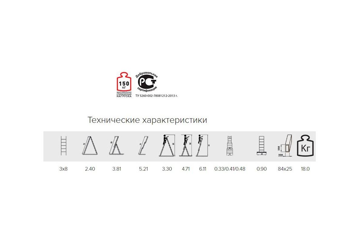 Лестница АЛЮМЕТ 5308 трехсекционная универсальная алюминиевая 3х8 ступеней