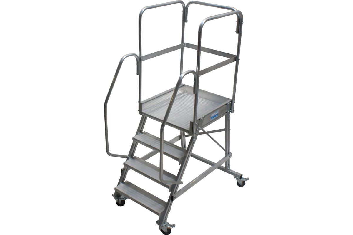 Односторонняя алюминиевая передвижная лестница с площадкой. Широкие