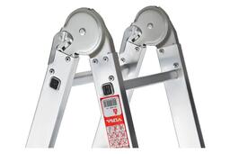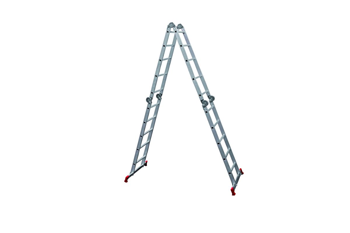 НОВАЯ ВЫСОТА 4х5 — лестница алюминиевая складная. Конструкция содержит 4 секции по 5 ступеней в каждой. Модель универсальна: трансформируется в приставную лестницу, стремянку и помост. Благодаря компактной конструкции и вариативности положений подходит для полупрофессионального и профессионального применения. Допустимая нагрузка — до 150 кг. Максимальная высота — 5,46 м. Ширина ступени — 28 мм.