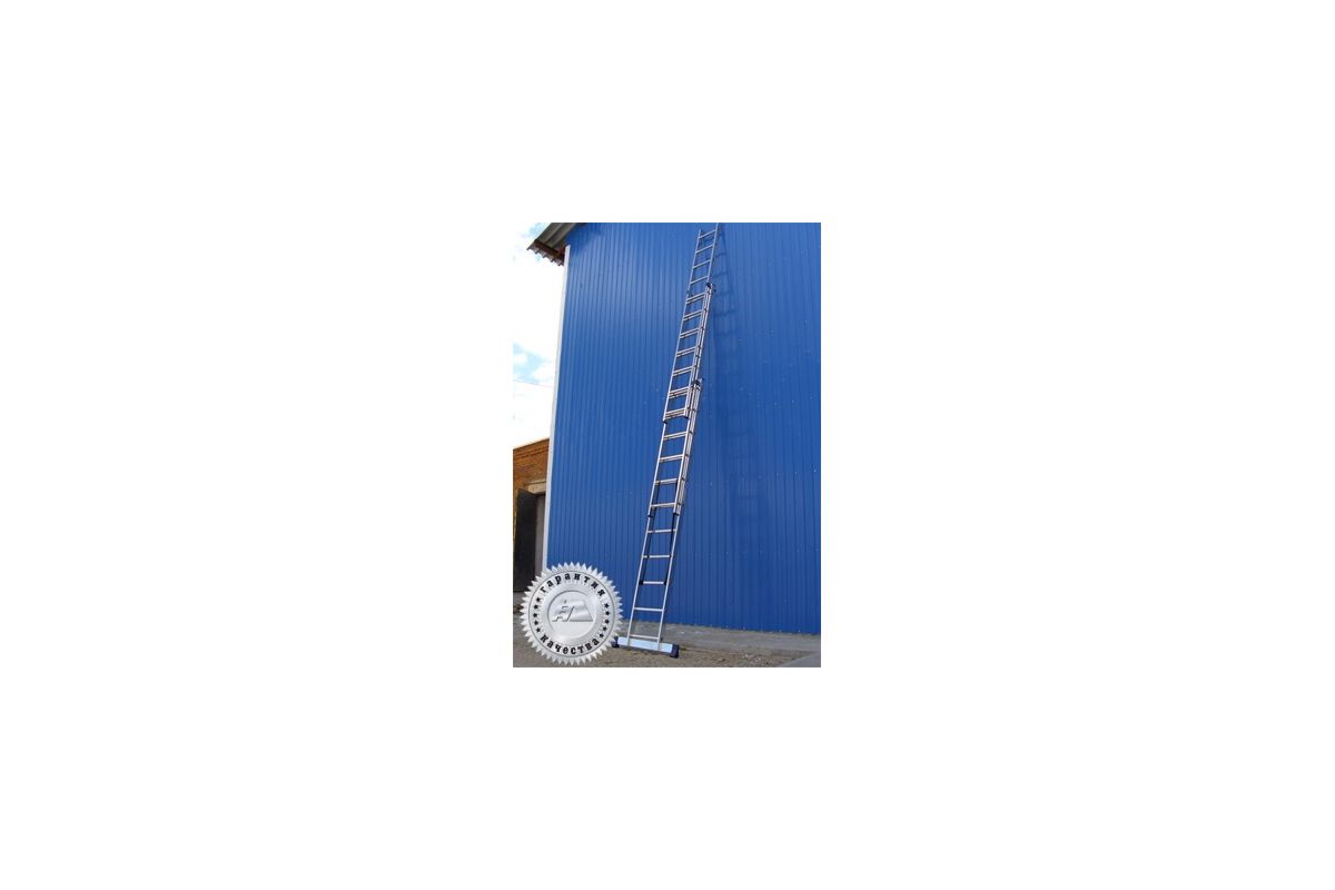 - Трехсекционная (универсальная) лестница выполнена из алюминия;