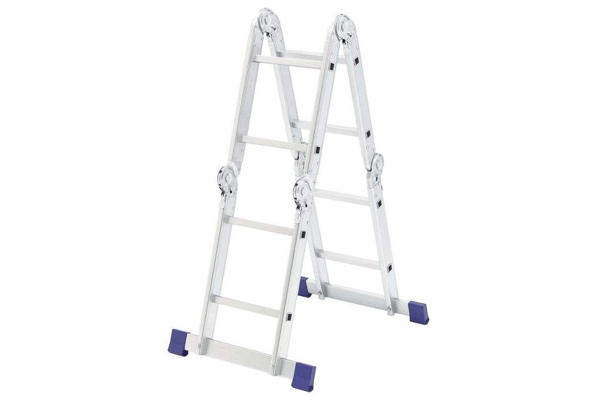 Шарнирная алюминиевая лестница СИБРТЕХ 4х2 97879 может трансформироваться в зависимости от выполняемых работ.