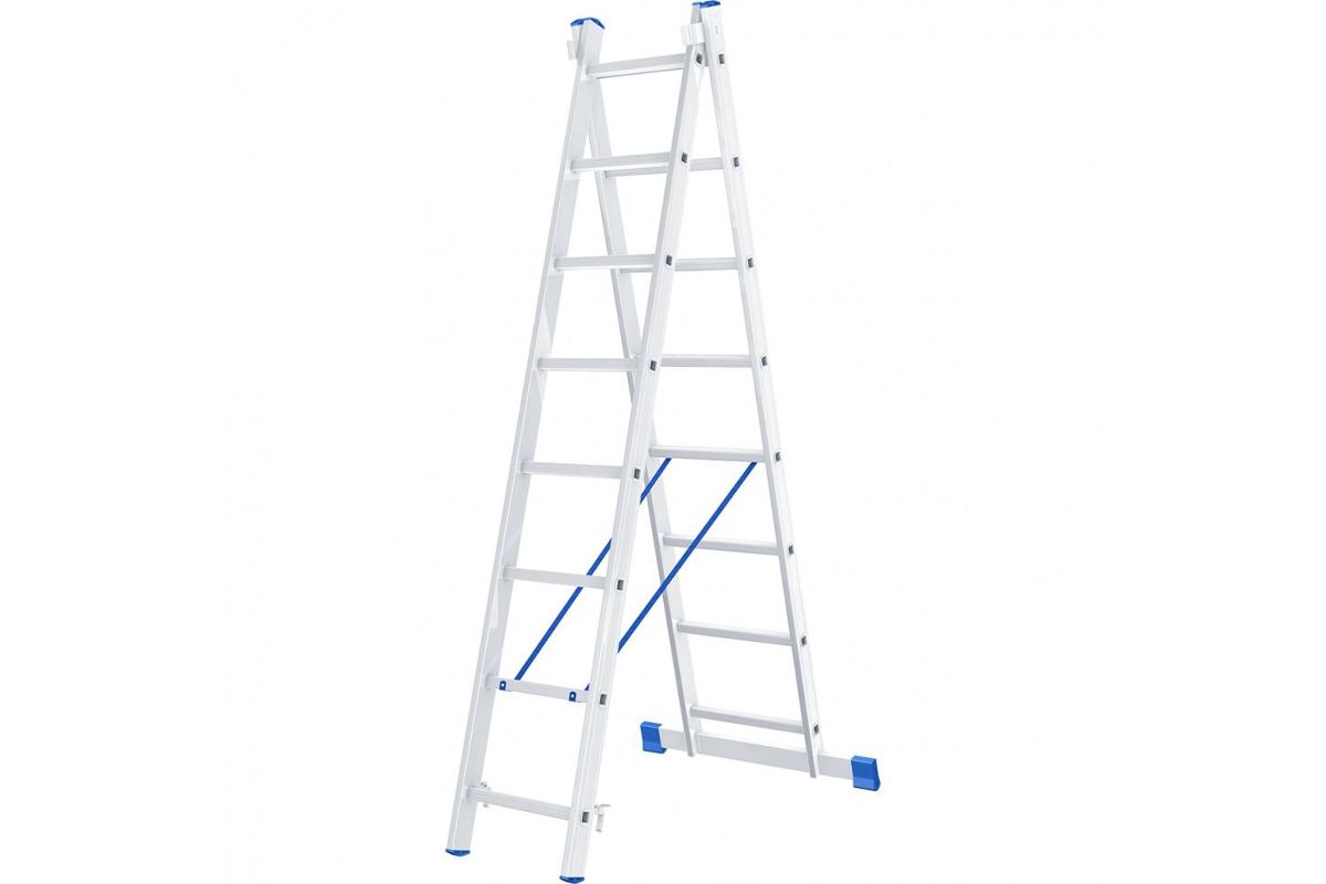 Лестница СИБРТЕХ 97908 2 х 8 ступеней алюминиевая двухсекционная