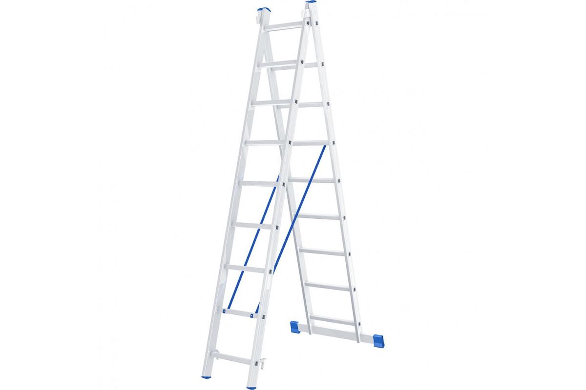 Лестница СИБРТЕХ 97909 2 х 9 ступеней алюминиевая двухсекционная