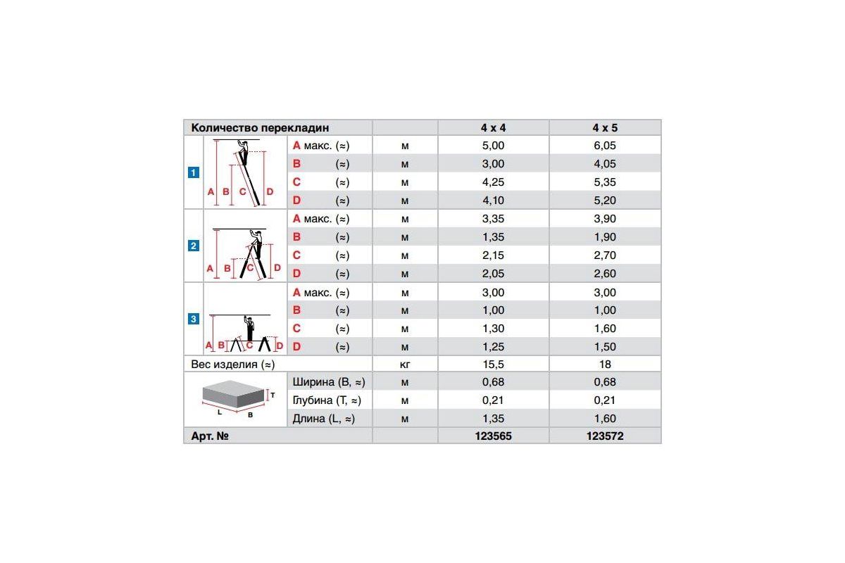 Шарнирная телескопическая лестница редназначена для строительно-монтажных работ на высоте. Четырехсекционная лестница состоит из двух внутренних и двух наружных секций. Лестница изготовлена из алюминия, по типу - трансформер. Может принимать несколько положений: как стремянка с двумя секциями, как лестница, выдвинутая на полную длину и как две индивидуальные стремянки с двумя секциями. Рабочая высота лестницы зависит от того положения, в котором ее установить.