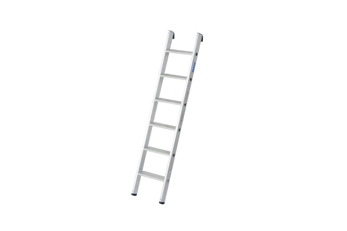 - Легкая односекционная приставная лестница из алюминия со ступеньками для профессионального применения;
