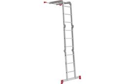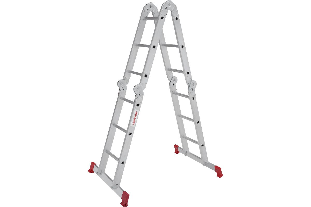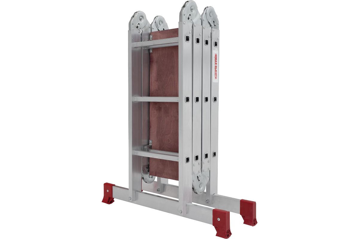 Алюминиевая лестница трансформер Новая Высота NV 233 4x3 с помостом обладает повышенной прочностью и надёжностью при небольшом весе, простотой установки и высоким уровенем комфорта. Отличительная особенность таких лестниц-трансформеров - широта возможных позиций, в которых их можно использовать, а также их компактность, что облегчает их перемещение и транспортировку. Регулировка положения лестницы осуществляется с помощью стальных шарниров, которые обеспечивают надежную автоматическую фиксацию выбранного положения лестницы. В целях удобства и безопасности при эксплуатации, лестница оснащена противоскользящими рельефными ступенями.