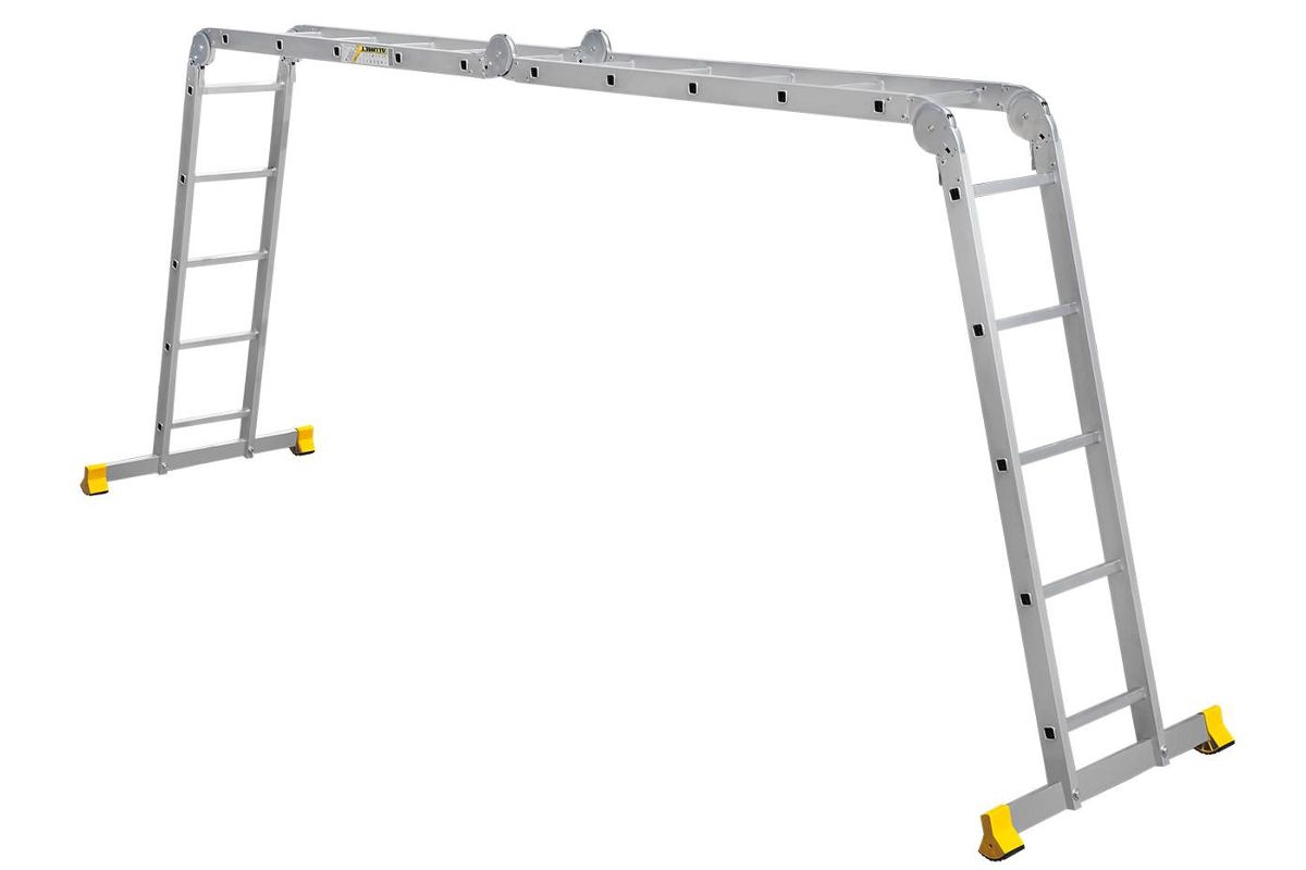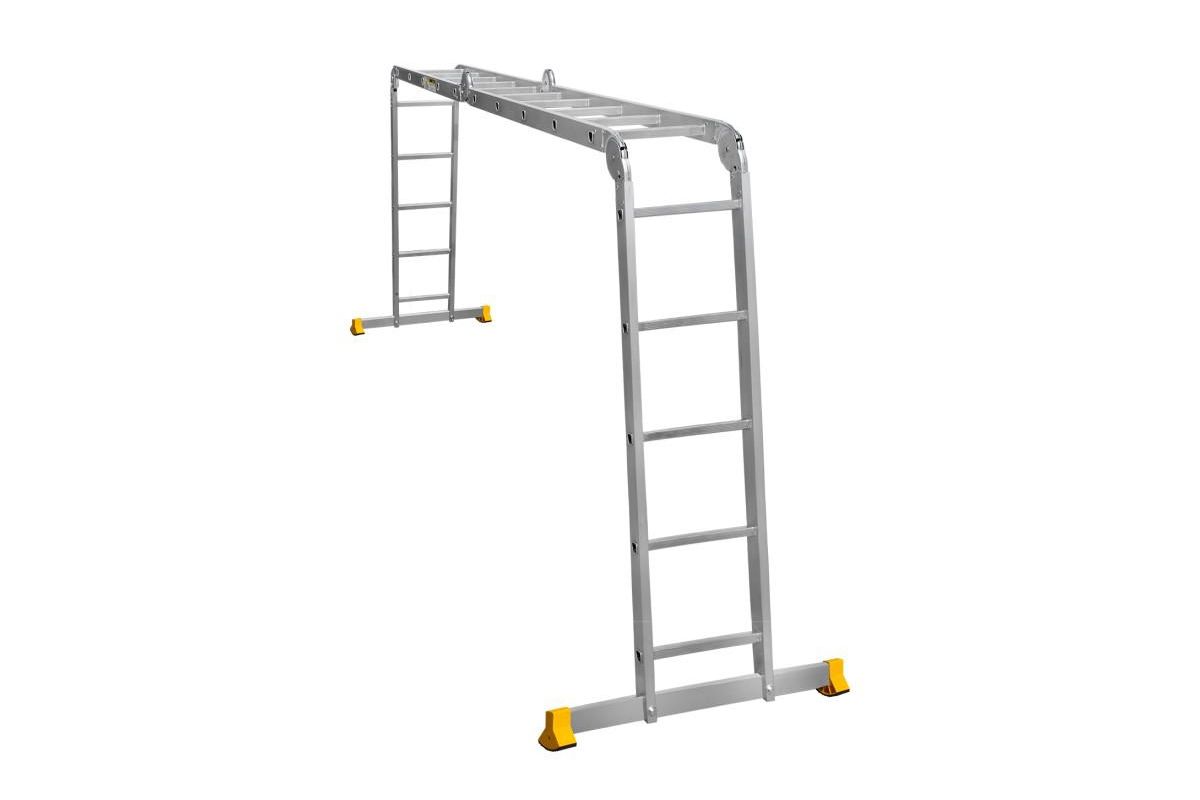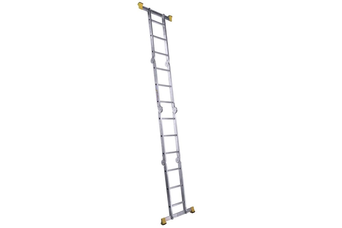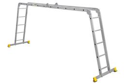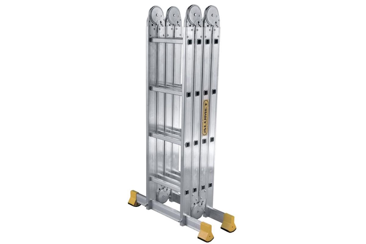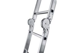Алюминиевая профессиональная четырехсекционная шарнирная лестница Алюмет Т 455 - это многофункциональное приспособление профессионального класса. Может использоваться как в быту, так и в профессиональном строительстве в качестве стремянки, приставной лестницы или подмостей. В сложенном виде изделие имеет компактные размеры, что позволяет легко разместить её в любом удобном месте. Опоры оснащены наконечниками, которые защищают лестницу от произвольного скольжения, что гарантирует безопасность при работе.