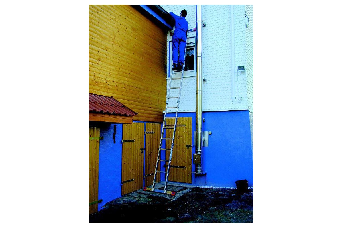 Шарнирная лестница KRAUSE MULTIMATIC 4х4 сочетает в себе функции стремянки, приставной лестницы и рабочей платформы. Устойчивость конструкции обеспечивают поперечные траверсы с двухкомпонентными заглушками. Таким образом, она не скользит по поверхности, даже на кафельном полу.