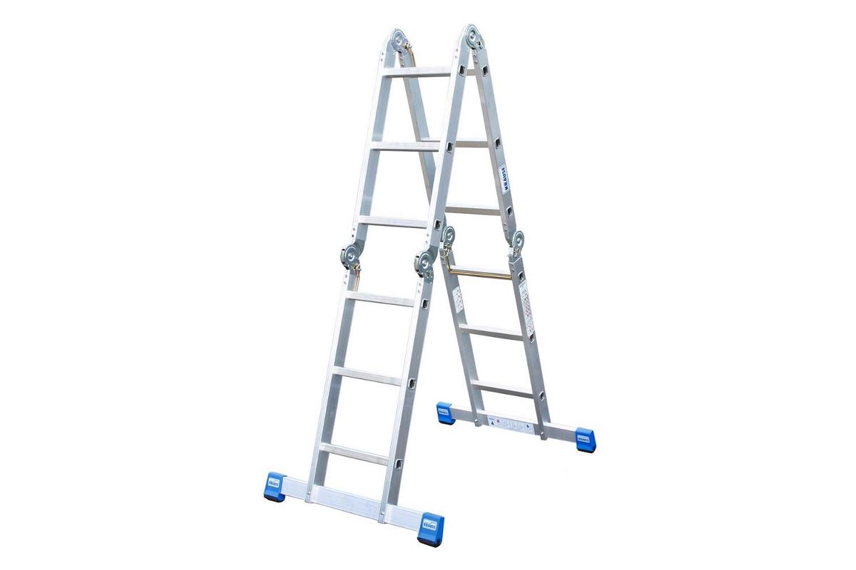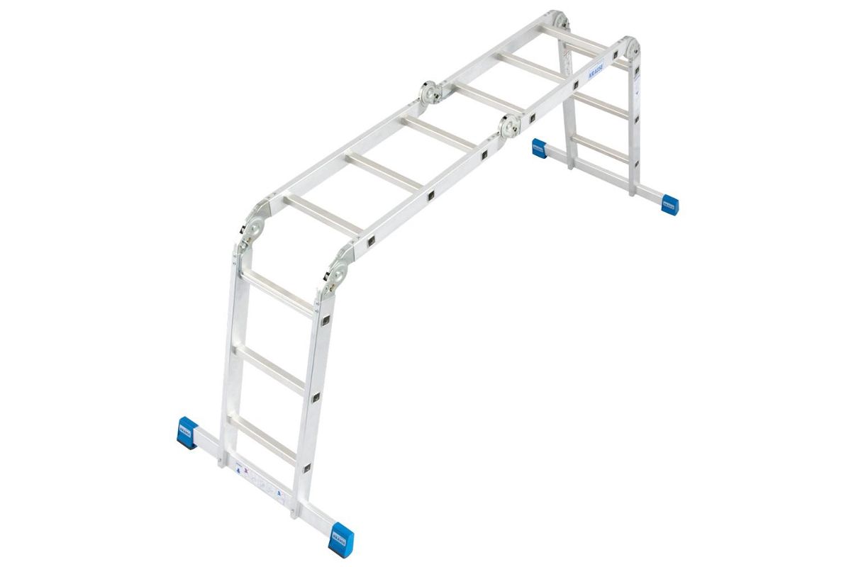 KRAUSE STABILO KS-123510 – лестница-трансформер на шарнирах. Состоит из четырёх секций. Устанавливается как приставная лестница, стремянка или подмости. Пригодится на стройплощадке или во время домашнего ремонта. Максимальная длина – 3,55 м. Вес – 12,5 кг.