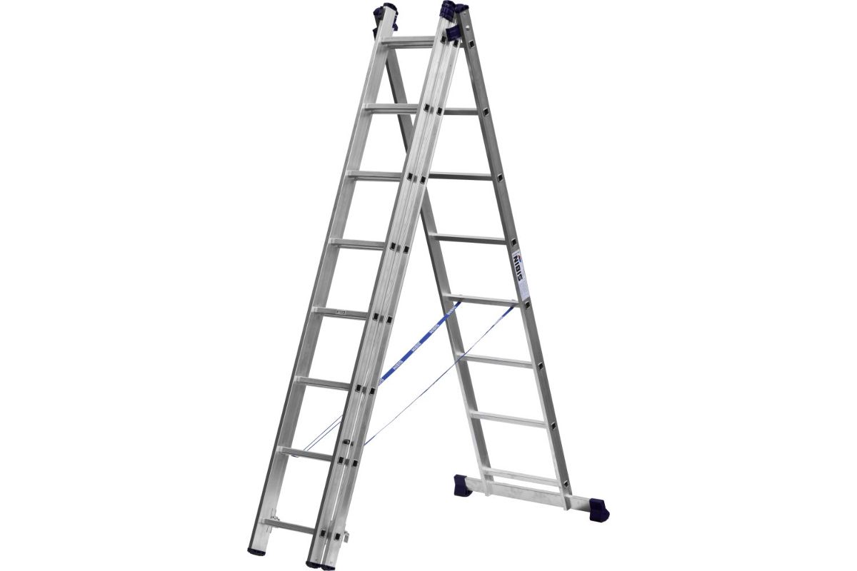 СИБИН 38833-08 – трёхсекционная лестница с максимальной высотой 5 м. Пригодится для строительства, ремонта, отделочных работ. На даче поможет собрать урожай или покрасить фасад дома. Весит 11,2 кг.