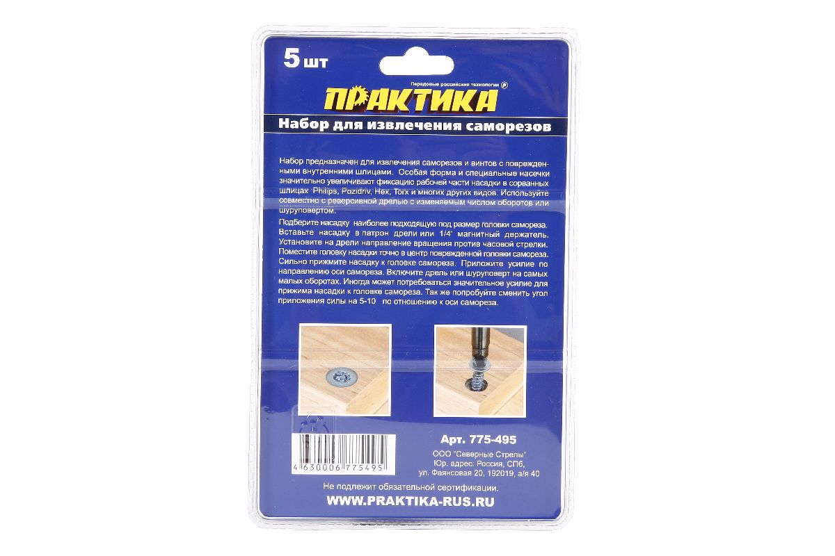 Набор для извлечения саморезов ПРАКТИКА 775-495 5пр.