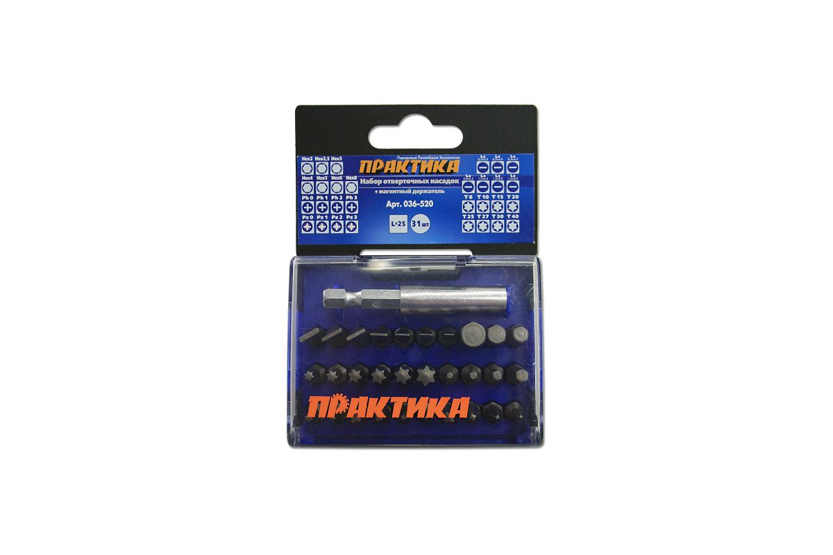 Набор бит ПРАКТИКА 036-520 31шт.: Ph 4шт, Pz 4шт, Sl 7шт., Torx 8шт., Hex 7шт., держатель