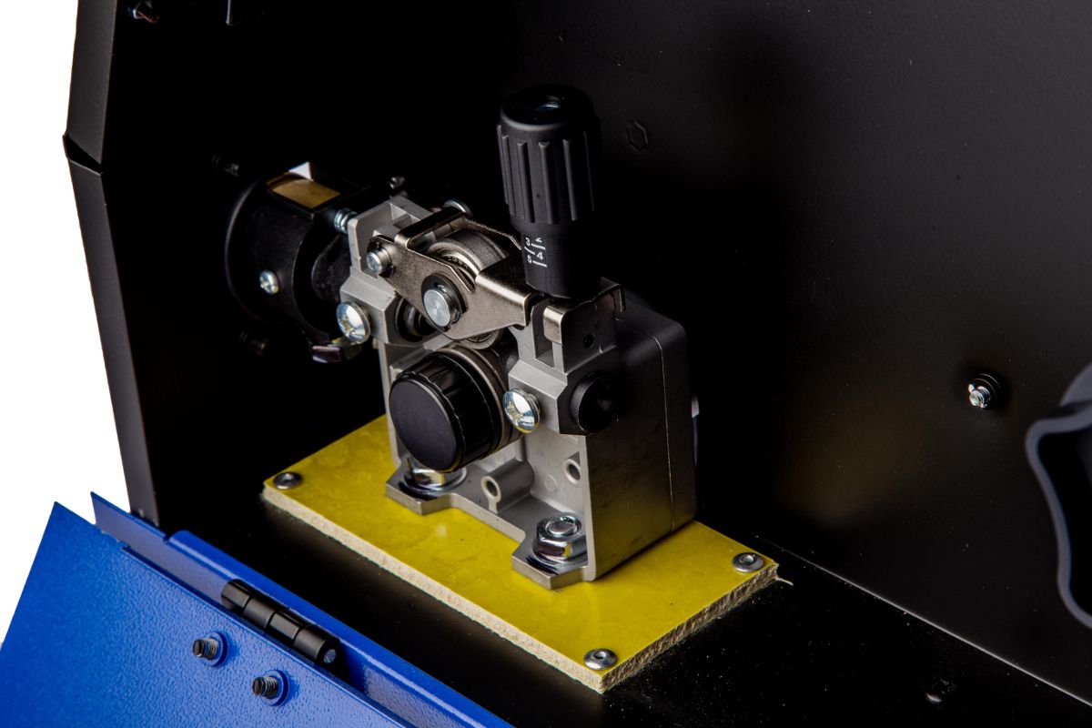 Скорость проволоки и сварочный ток управляются регуляторами спереди. Для усиления поверните их по часовой стрелке, для уменьшения – против.