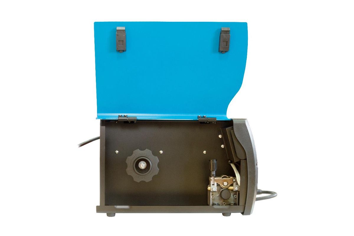 Сварочный полуавтомат весит 14 кг. Для транспортировки сверху расположена пластиковая ручка.