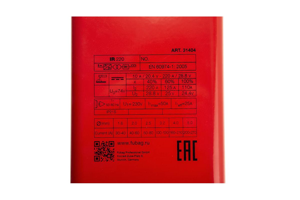 Fubag IR 220 инвертор для MMA сварки с помощью электродов до 5 мм. Пригодится для профессиональной деятельности и в быту. Мощность 8100 Вт. Диаметр электродов 1,6 – 5 мм.
