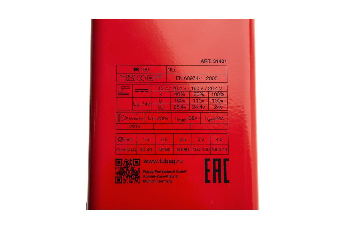 Инвертор сварочный FUBAG IR 160 220В ММА 5-160А 1.6-4.0мм 4.64кг