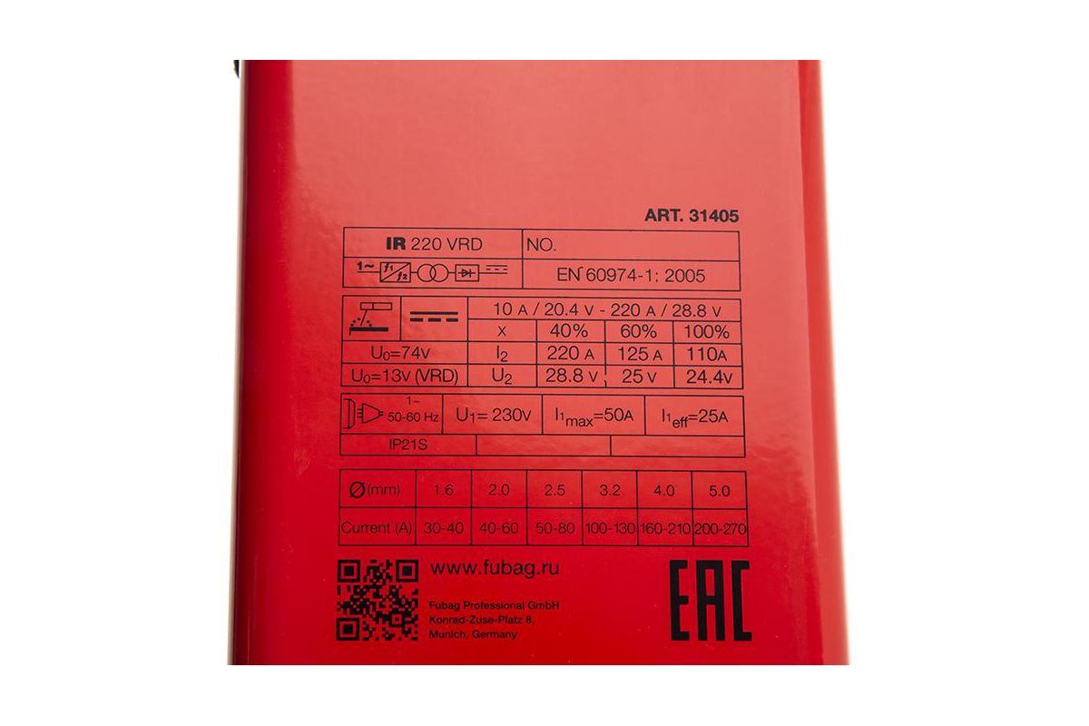 Сварочный инвертор FUBAG IR 220 VRD (31405)