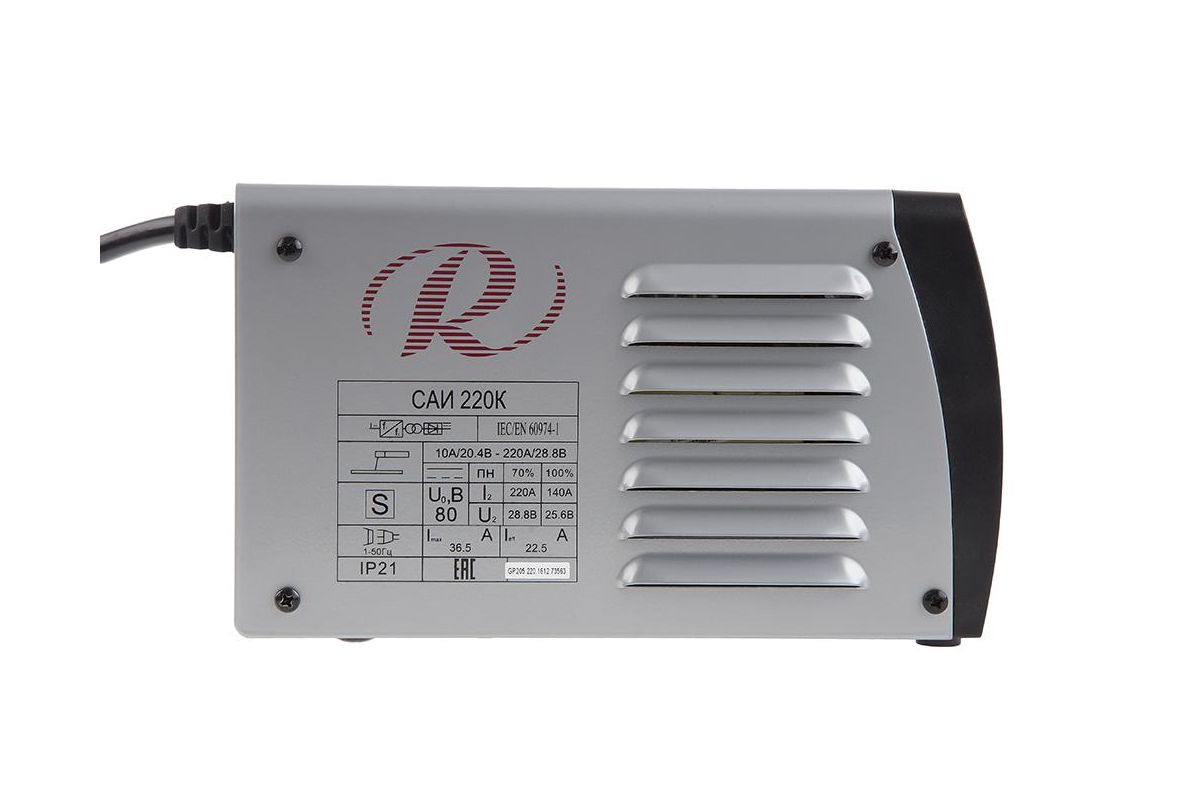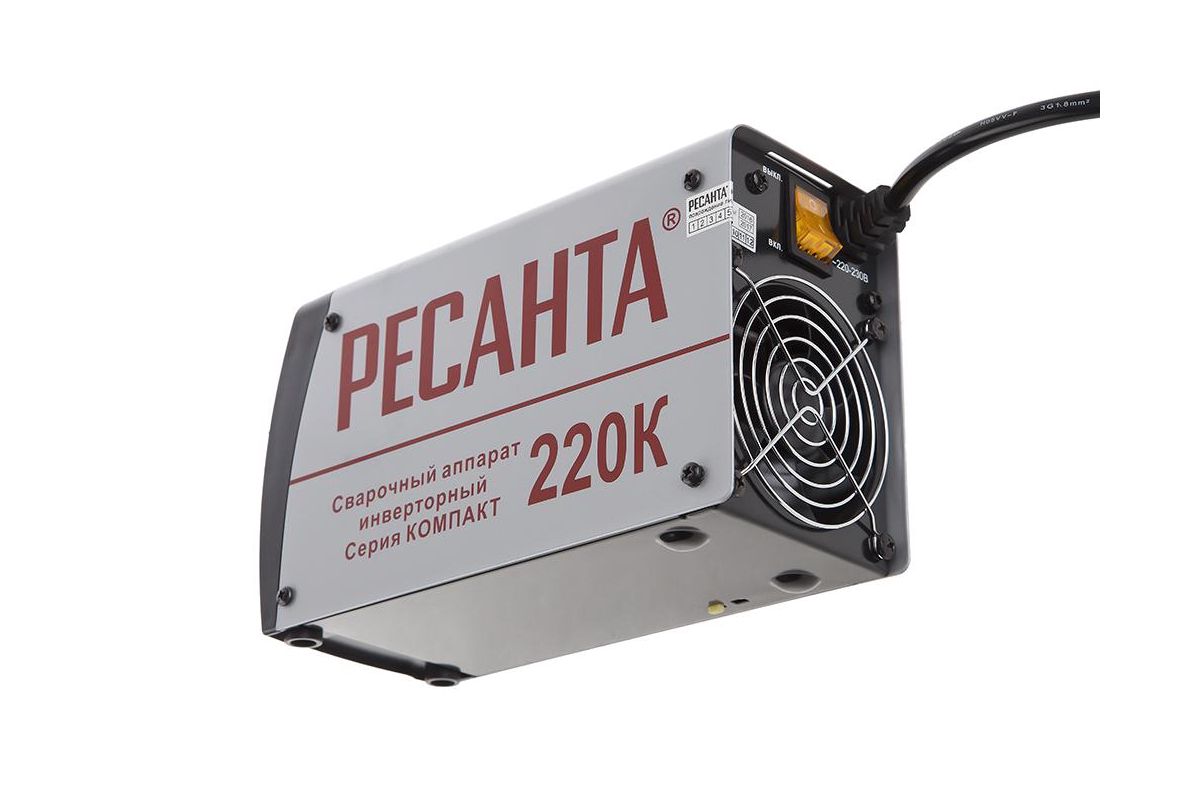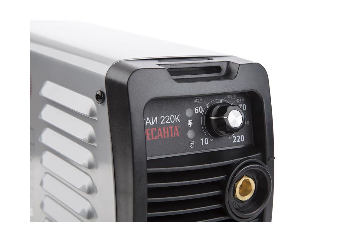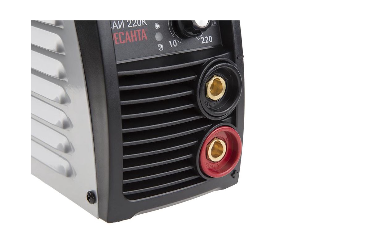 Компактный сварочный инвертор РЕСАНТА САИ 220К рассчитан на работу электродами диаметром до 5 мм. Регулировка сварочного тока возможна в пределах 10-220 А. Максимальная потребляемая мощность составляет около 8 кВт. Аппарат работает от бытовой электросети 220 В/50 Гц с отклонением не более ±10%. Напряжение холостого хода 80 В и класс защиты IP21 допускают использование на открытых площадках при незначительных осадках. Вес инвертора 4,5 кг.