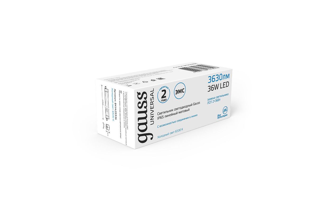 Св-к светодиодный Gauss IP65 1170*60*55мм 36Вт 2500lm 6500К линейн. мат. с возм. соед. в линию 1/20