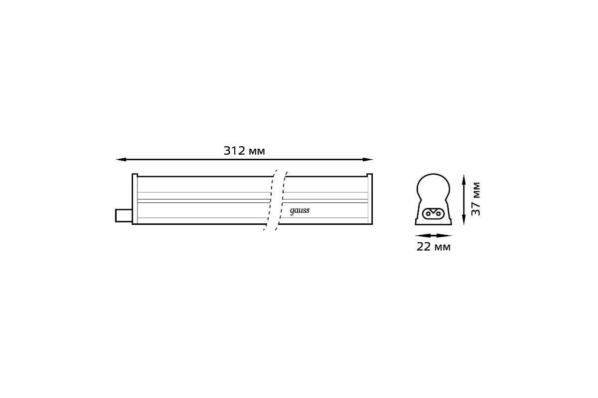 Светильник GAUSS LED TL линейный матовый 5W 3000K 311х25х36, 400лм 1/25