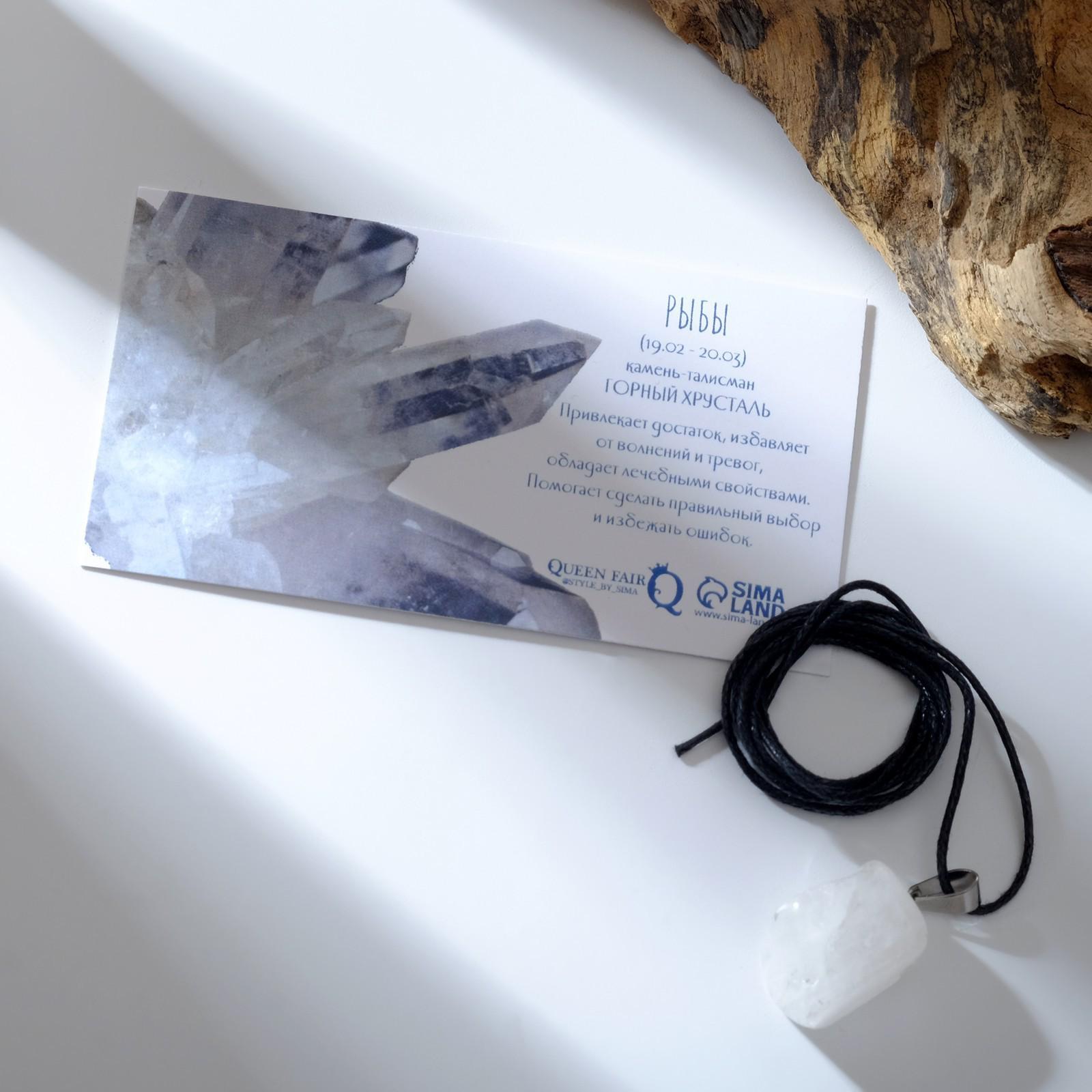 Кулон "Знаки зодиака" горный хрусталь, галтовка, Рыбы , длина 65см