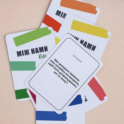 Між нами Kids - настільна гра, яка дасть вам необхідний інструмент, щоб краще зрозуміти свою дитину, допомогти розвитку її емоційного інтелекту, допомогти їй стати впевненою в собі та успішною, налагодити спілкування з дітьми. Гра Між нами Kids буде актуальною для спілкування з дітьми від дошкільного до підліткового віку.
