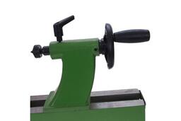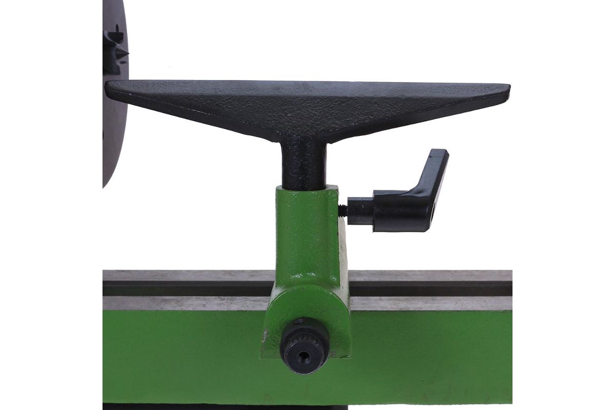Пиноль задней бабки выдвигается. Заготовка надёжно фиксируется в центре.