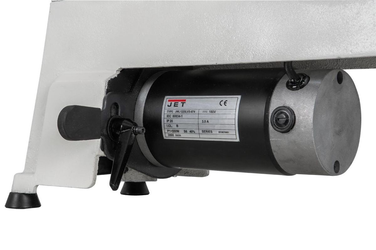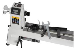 JWL-1220LVS — добротный токарный станок любительского класса с чугунной станиной и управляющей электроникой. Высота расположения шпинделя позволяет обтачивать на нем заготовки диаметром примерно до 300 мм в случае крепления на планшайбе и до 230 мм при работе над опорой. Межцентровое расстояние можно увеличить со штатных 510 мм до одного метра, установив удлинитель станины (поставляется в качестве опции).