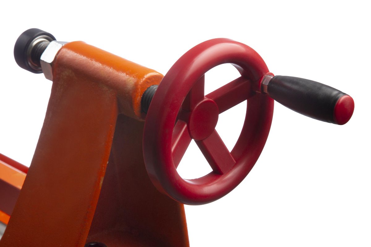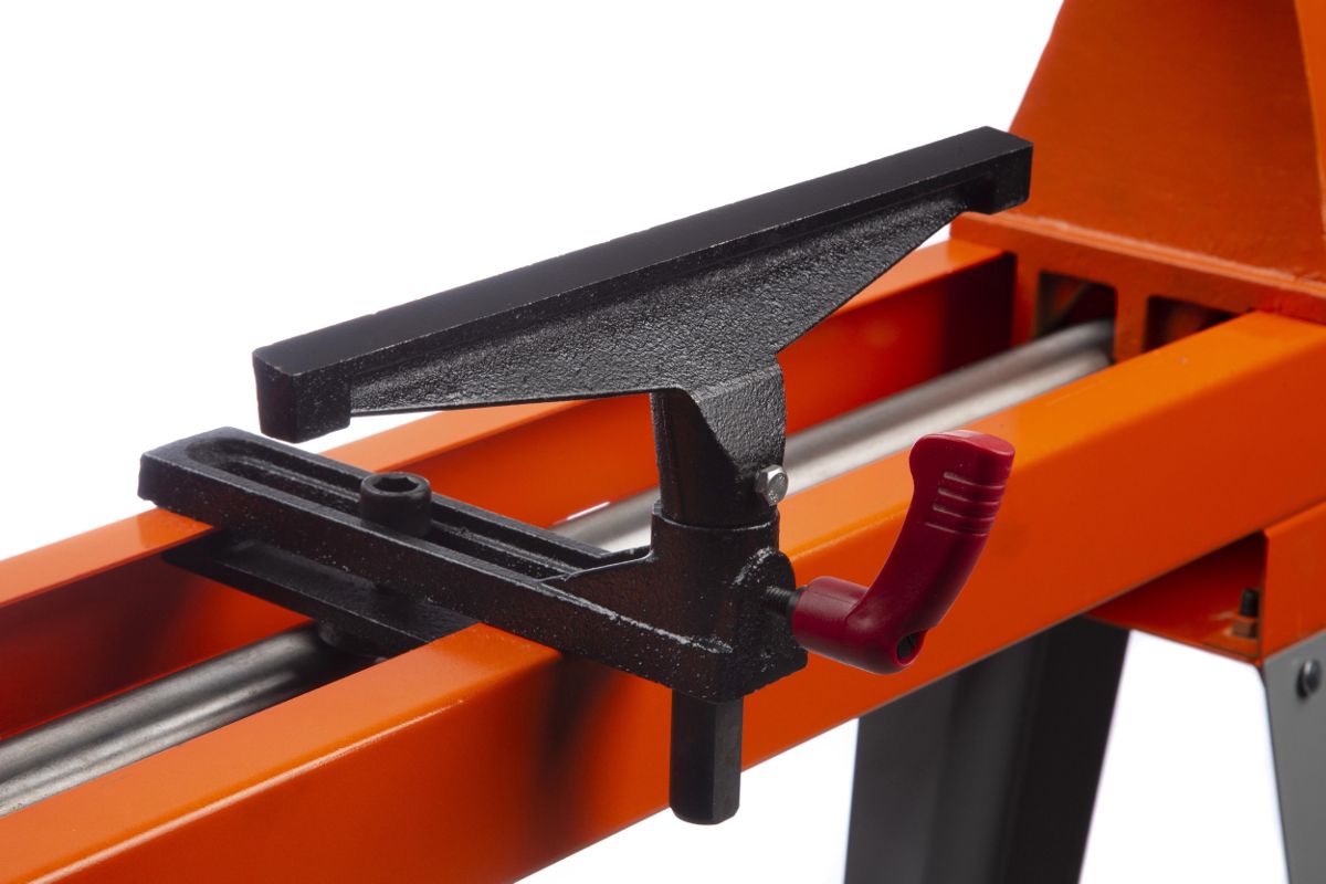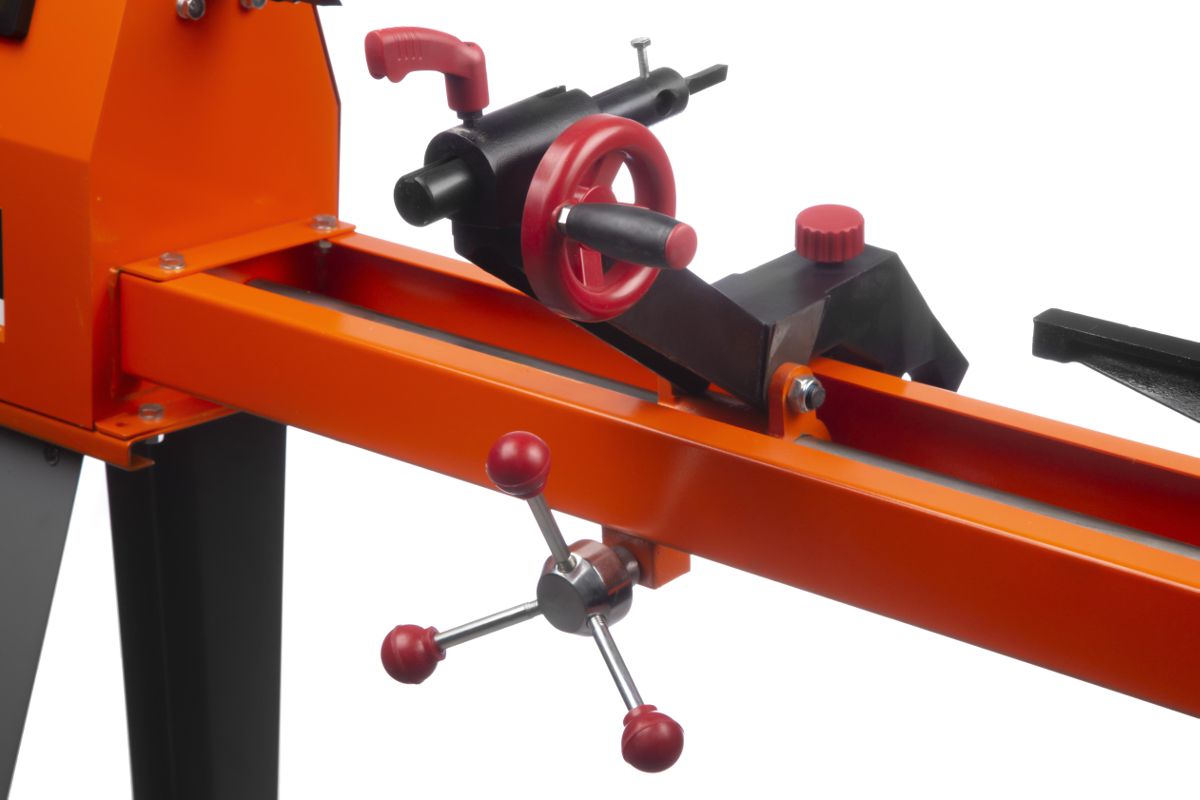 Задняя бабка устанавливается в нужную позицию с помощью фиксирующей ручки. Заготовка надёжно фиксируется для точности проводимых работ.