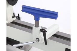 Задняя бабка устанавливается в нужную позицию с помощью фиксирующей ручки. Заготовка надёжно фиксируется для точности проводимых работ.