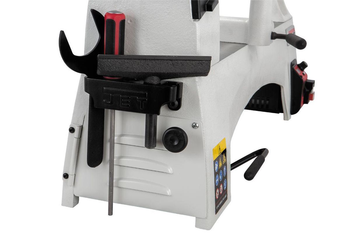 Jet JWL-1221VS – представитель нового поколения профессиональных токарных станков Jet, сочетающий современную управляющую электронику и улучшенную механическую часть. В сравнении с предшествующей моделью (JWL-1220), значительно увеличена жёсткость: станина при схожей длине стала шире, а общая масса выросла на 10 кг; использованы более мощные подшипники шпинделя. Для станины и подставки станка можно докупить удлинения, в этом случае максимальное межцентровое расстояние увеличится до 1080 мм.
