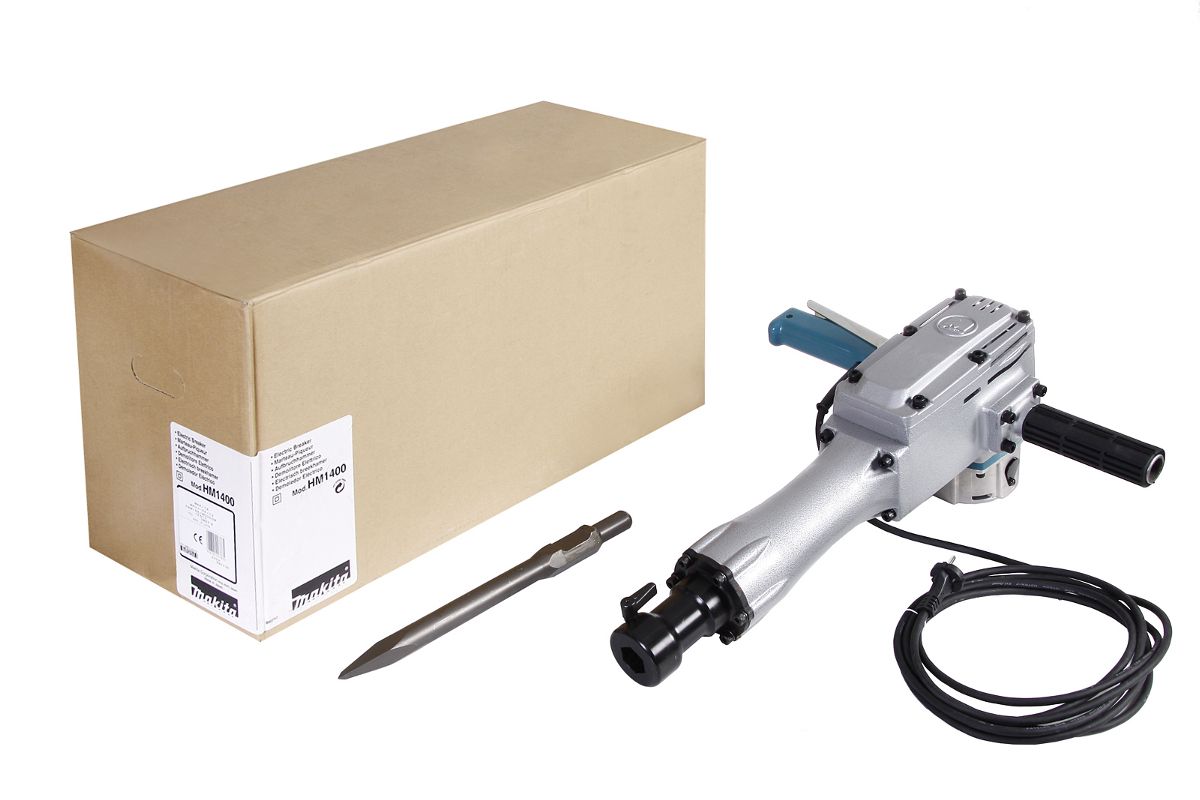 Бетонолом Makita HM1400 оснащен мощным двигателем (1240 Вт) с модифицированным ударным механизмом и сниженным уровнем вибрации. Частота ударов — 1200 уд/мин; сила удара — 33, 7 Дж.