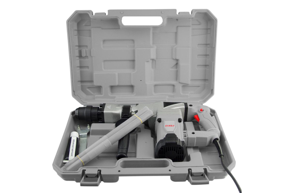Электрический отбойный молоток Ставр МОЭ-1300 снабжен патроном SDS-max, что обеспечивает быструю замену рабочего долота. Боковая рукоятка поворачивается на 360 градусов, что обеспечивает удобную работу в любом положении. Модель поставляется в кейсе, что решает вопрос хранения и транспортировки.