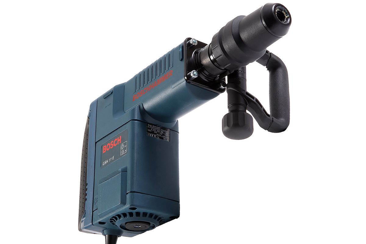 Bosch GSH 11 E — профессиональный отбойный молоток от компании Бош. Это один из основных инструментов на промышленном предприятии или в строительной компании. Отбойный молоток Bosch GSH 11 E стал настолько популярным агрегатом, что другие производители электроинструмента попытались перенять элементы дизайна и воспроизвести внешний вид этого отбойного молотка, стали в точности повторять технологические решения, реализованные в этой модели, и копировать его.